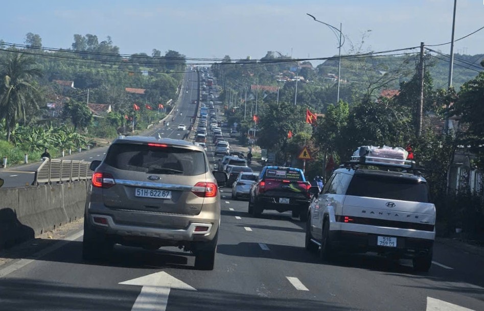 Quốc lộ 1 qua tỉnh Đắk Lắk hướng về phía Nam thường xuyên xảy ra tình trạng ùn ứ giao thông trong các ngày 20 và 21-2-2026 do quá tải phương tiện. Ảnh: Minh Dũng
