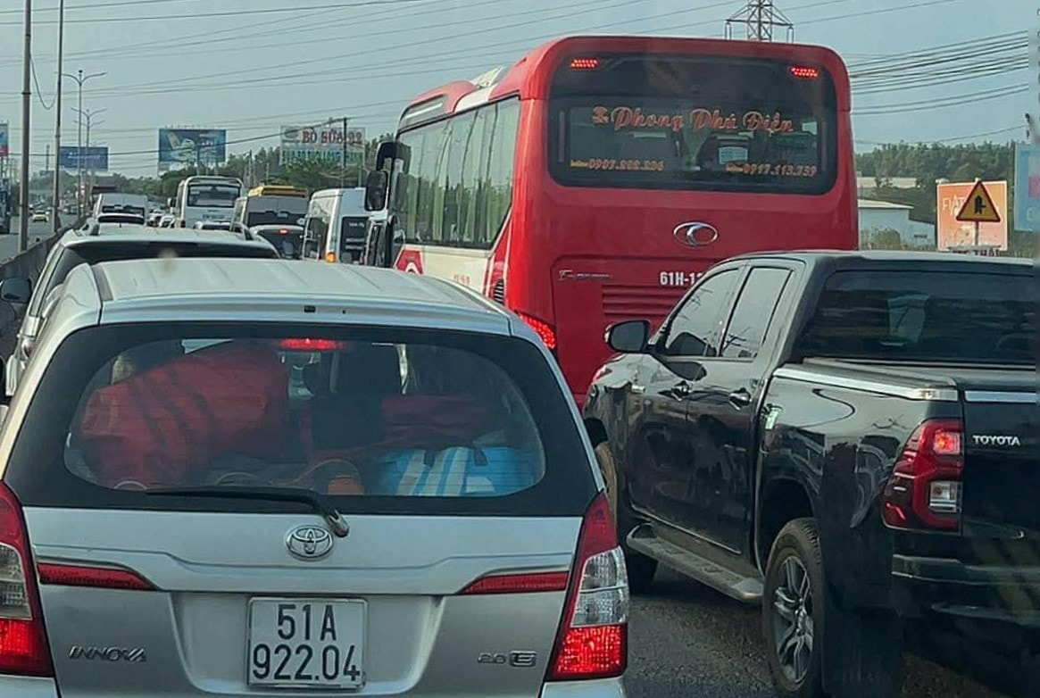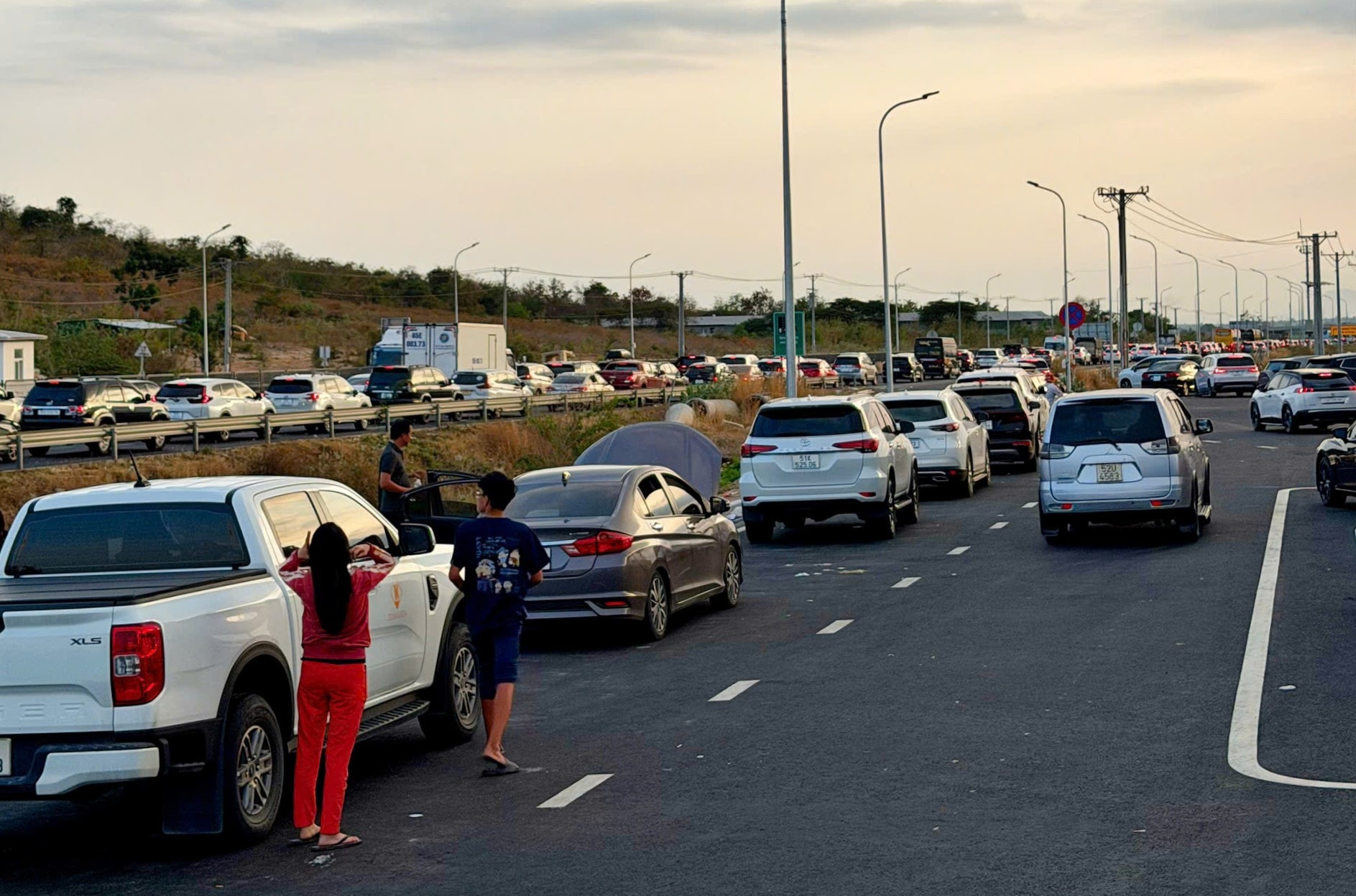 Tắc đường trên cao tốc từ Phan Thiết hướng về thành phố Hồ Chí Minh chiều 21-2. Ảnh: Tuấn Anh
