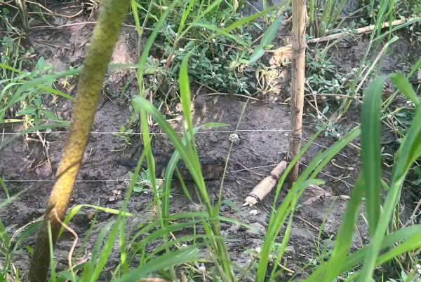 Qua công tác khám nghiệm hiện trường, cơ quan Công an thu giữ 1,5kg dây chì được cố định trên các thanh tre, bao quanh toàn bộ diện tích ruộng sen cùng sợi dây điện đôi được đấu nối vào nguồn điện.