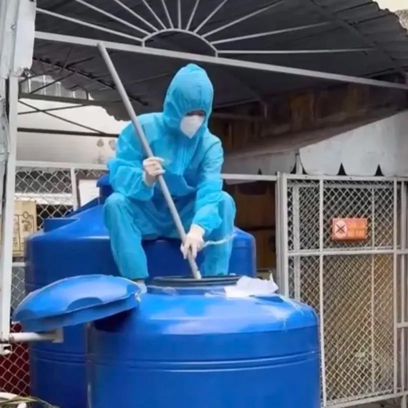 Công an đã hút toàn bộ chất thải ở hầm cầu và giám định, tìm ma túy. Ảnh: CA