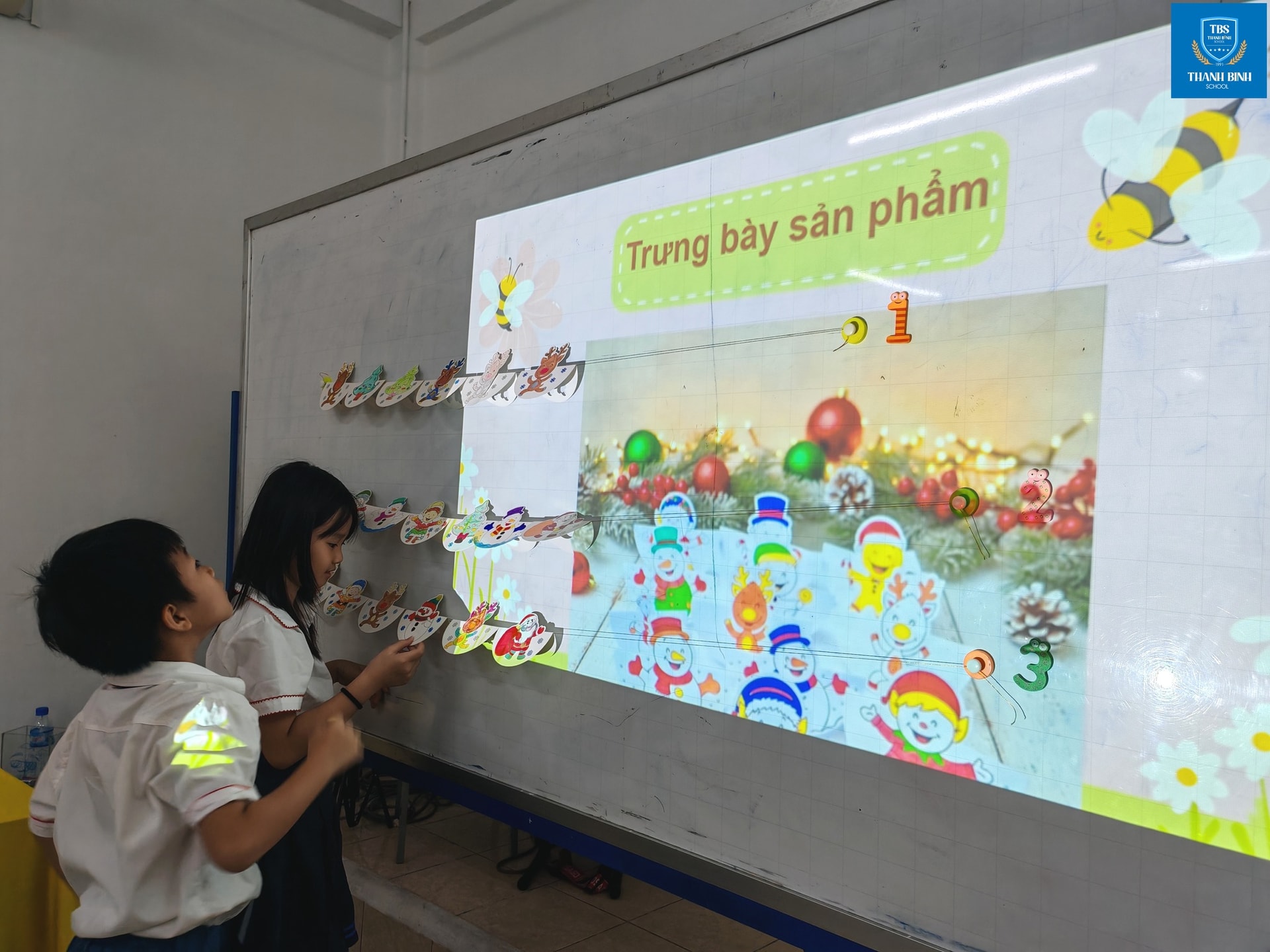 Một số nhóm học sinh còn sử dụng thiết bị chụp ảnh để ghi lại sản phẩm của mình, sau đó trình chiếu trước lớp. Việc kết hợp này giúp các em làm quen với cách trình bày, chia sẻ ý tưởng và tự tin thể hiện trước tập thể. Theo giáo viên, việc đưa công nghệ vào hoạt động Giáng sinh không nhằm thay thế trải nghiệm trực tiếp, mà hỗ trợ các em tiếp cận ý tưởng, rèn kỹ năng làm việc nhóm và giao tiếp.