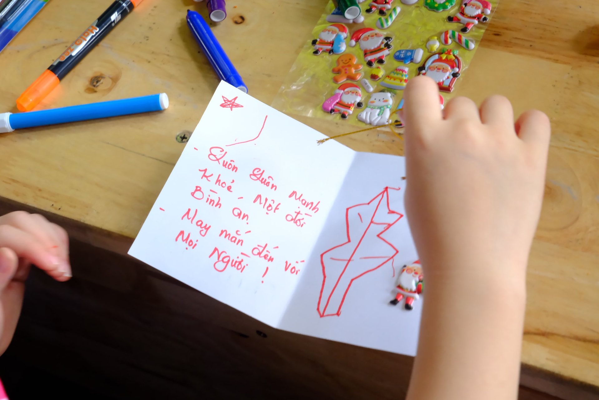 Bệnh nhi điều trị tại Bệnh viện đa khoa Thủ Đức nhận được tấm thiệp chúc mừng trong buổi lễ Giáng sinh an lành do bệnh viện tổ chức. Ảnh: V.Anh