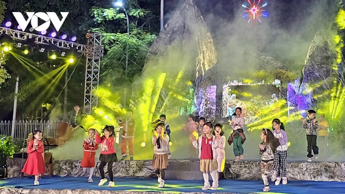 Các em nhỏ biểu diễn văn nghệ tại Nhà thờ Chính tòa Hải Phòng, tạo không khí rộn ràng, ấm áp