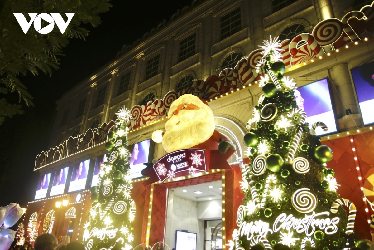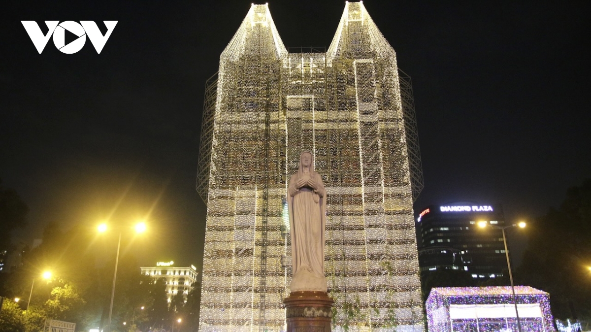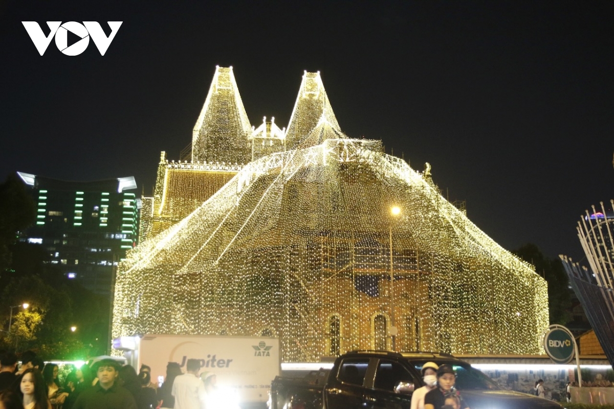 Nhà thờ Đức Bà rực rỡ khi được thắp sáng bằng hệ thống đèn LED, tạo nên khung cảnh Giáng sinh lung linh