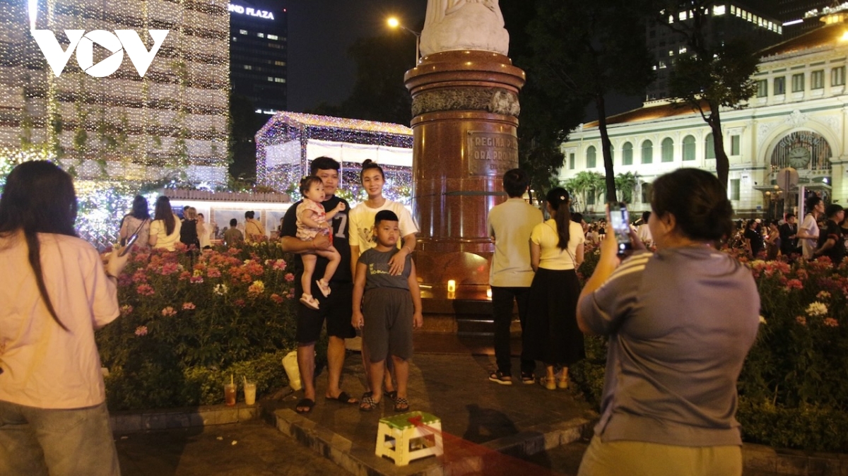 Tại khu vực Nhà thờ Đức Bà (phường Sài Gòn), từ đầu tháng 12, khi công trình hơn 140 năm tuổi được thắp sáng toàn bộ bằng hệ thống đèn LED từ 18 giờ 45 đến rạng sáng, lượng người dân và du khách đến chụp ảnh tăng đột biến. Dòng người tấp nập không chỉ tạo nên bức tranh lễ hội sôi động, mà còn mang lại “mùa làm ăn” hiếm có cho các thợ chụp ảnh dạo gắn bó lâu năm với khu vực này.