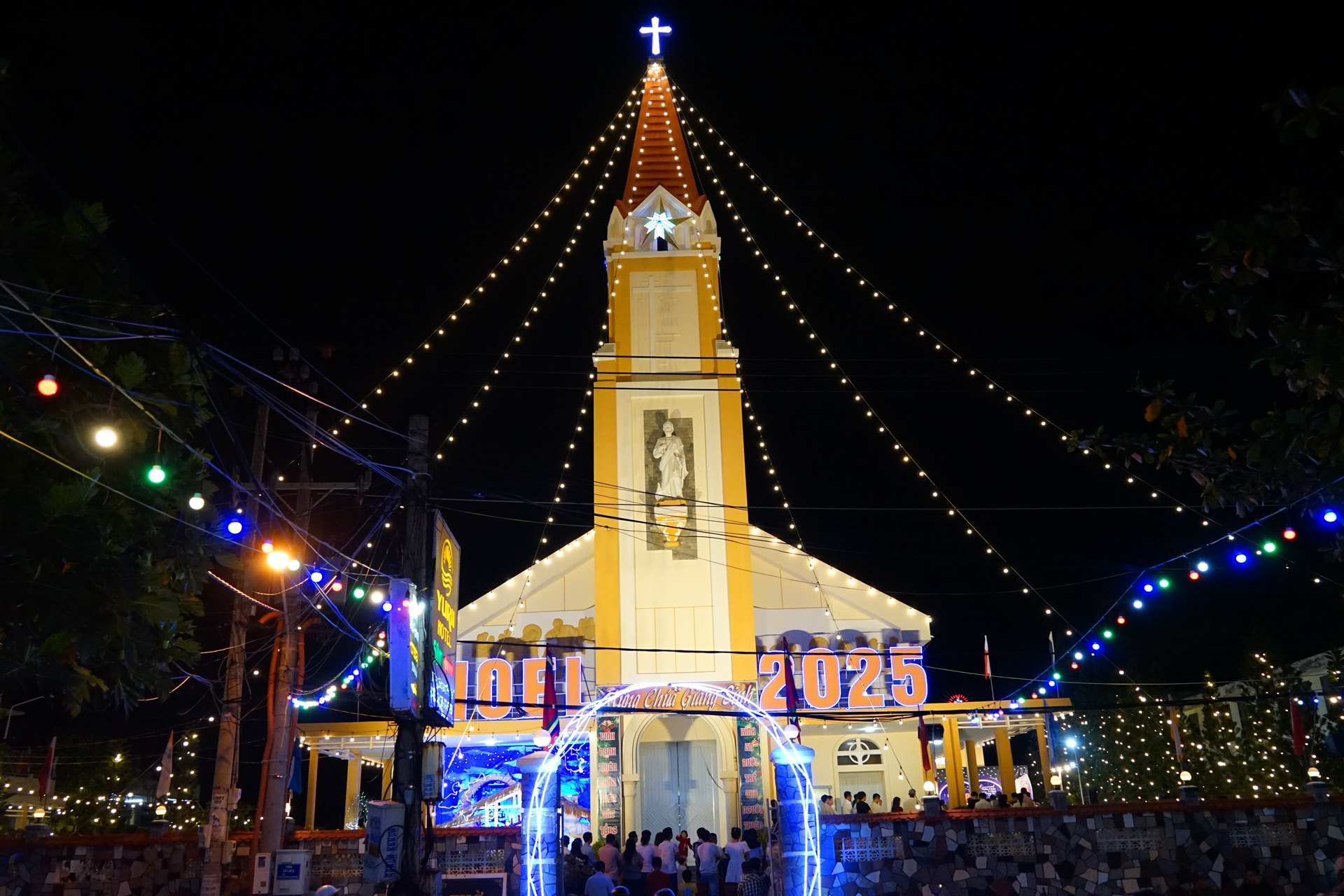 Nhiều khu phố như Thanh Hải A, E, D, C được thắp sáng lung linh, tạo nên không gian Giáng sinh rực rỡ.