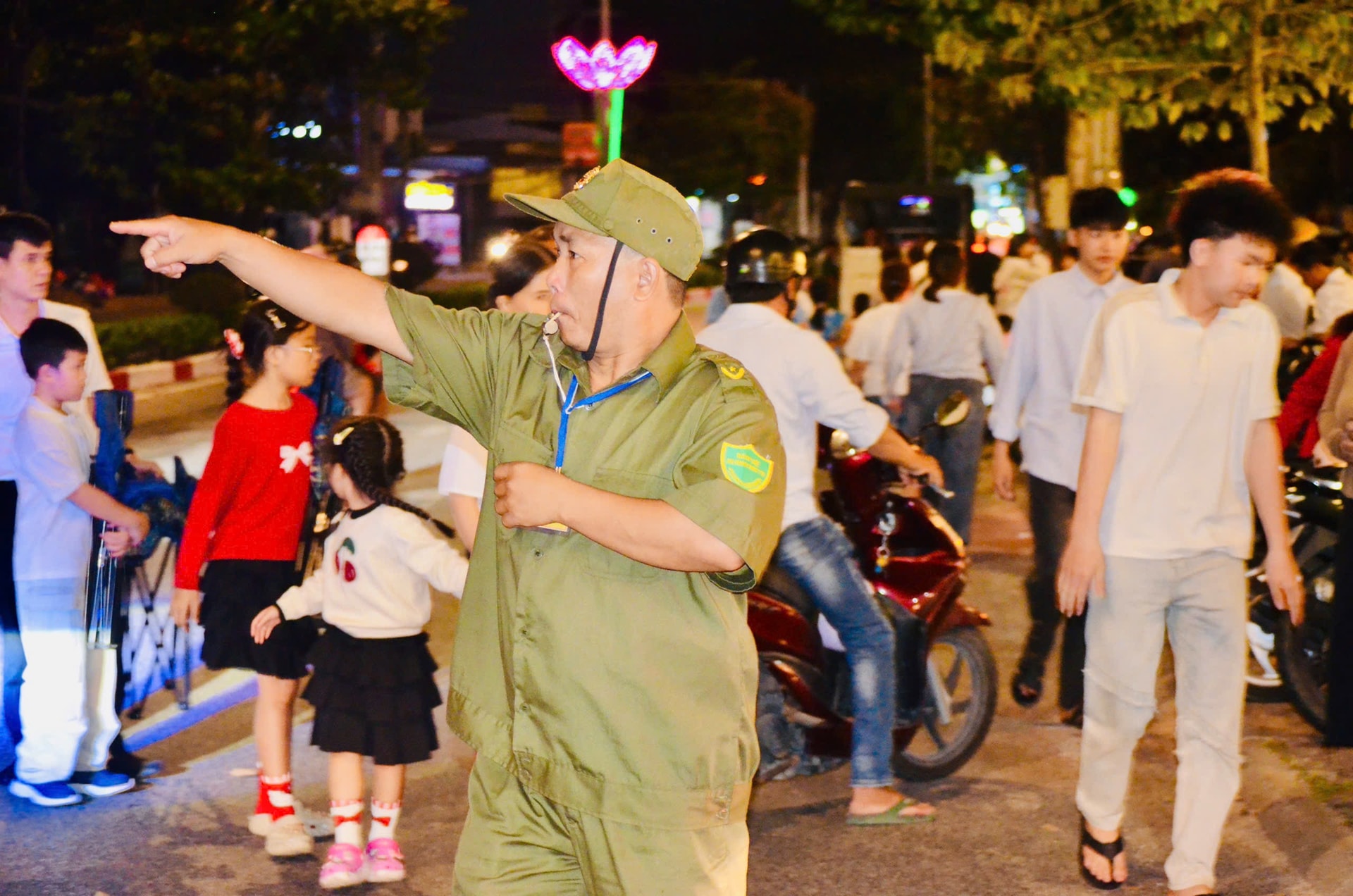 Công an phường La Gi chia thành nhiều khu vực đảm bảo an ninh trật tự cho người dân vui Giáng sinh