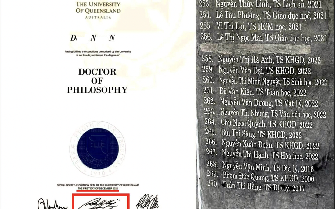 Tên ông Đ.N.N bị đục khỏi bia tiến sĩ của Trường ĐH Sư phạm Hà Nội 2. Ảnh: Nhóm Liêm chính Khoa học