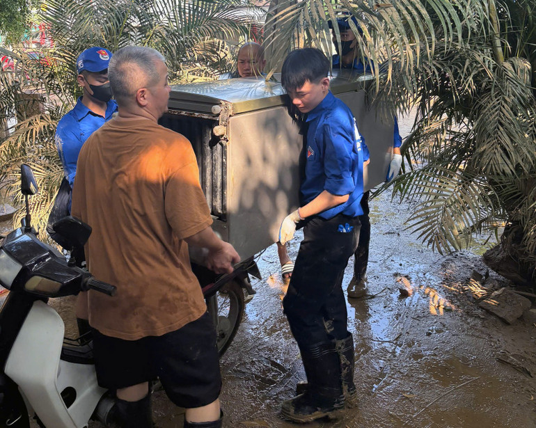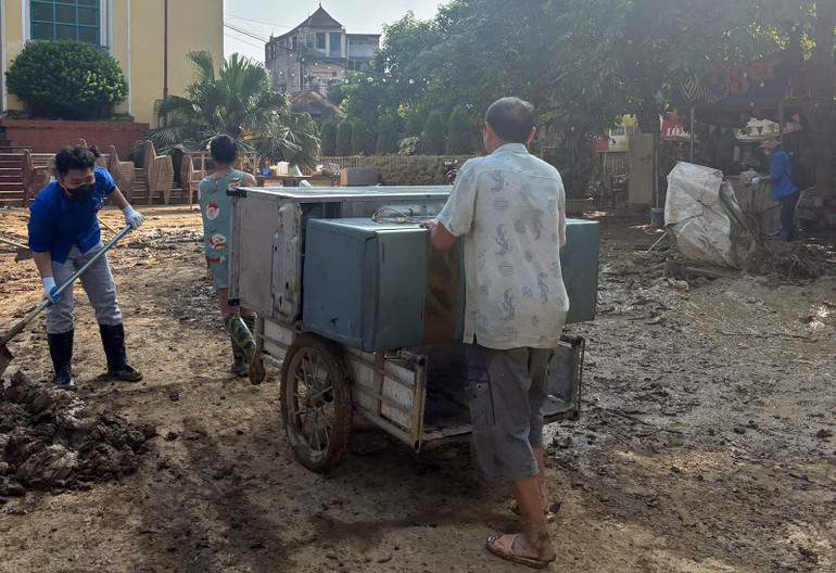 Các đội hình tình nguyện duy trì công tác khắc phục hậu quả cơn bão.