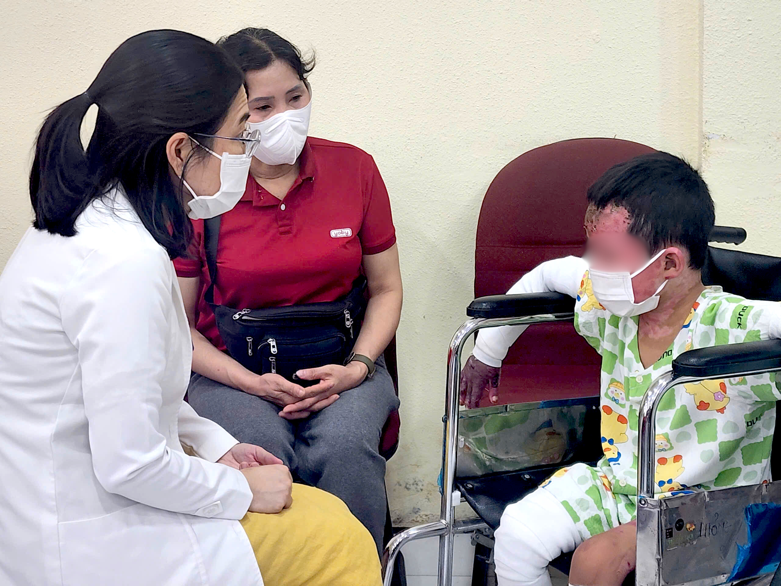 Tuy nhiên, trong thời gian tới, trẻ đối mặt với rất nhiều khó khăn do biến chứng sẹo, co rút. Vì thế, gia đình cần kiên trì cho trẻ thăm khám và can thiệp, cũng như chăm sóc tốt tại nhà.