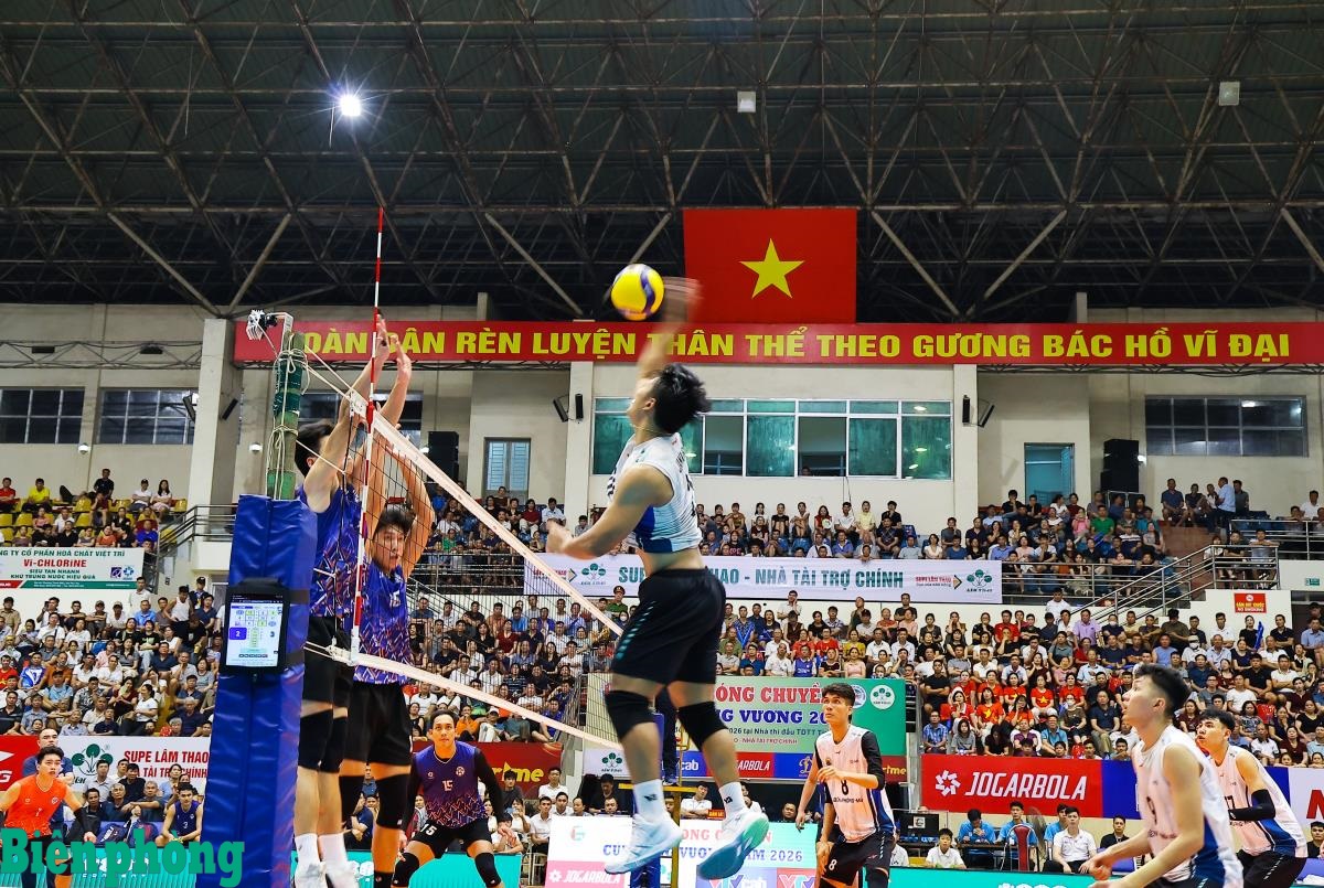 Với sức mạnh vượt trội, sự chênh lệch đẳng cấp và bản lĩnh thể hiện rõ trong set 3, khi Biên phòng MB chiến thắng với tỷ số 25 - 17. Ảnh: Thanh Xuân