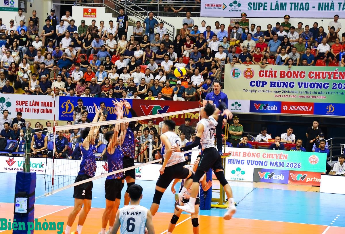 Chiến thắng trước Câu lạc bộ Hà Nội với tỷ số 3 - 0 (25 - 15, 28 - 26, 25 - 17), Biên phòng MB giành quyền vào chơi trận Chung kết Cúp Hùng Vương 2026. Ảnh: Thanh Xuân