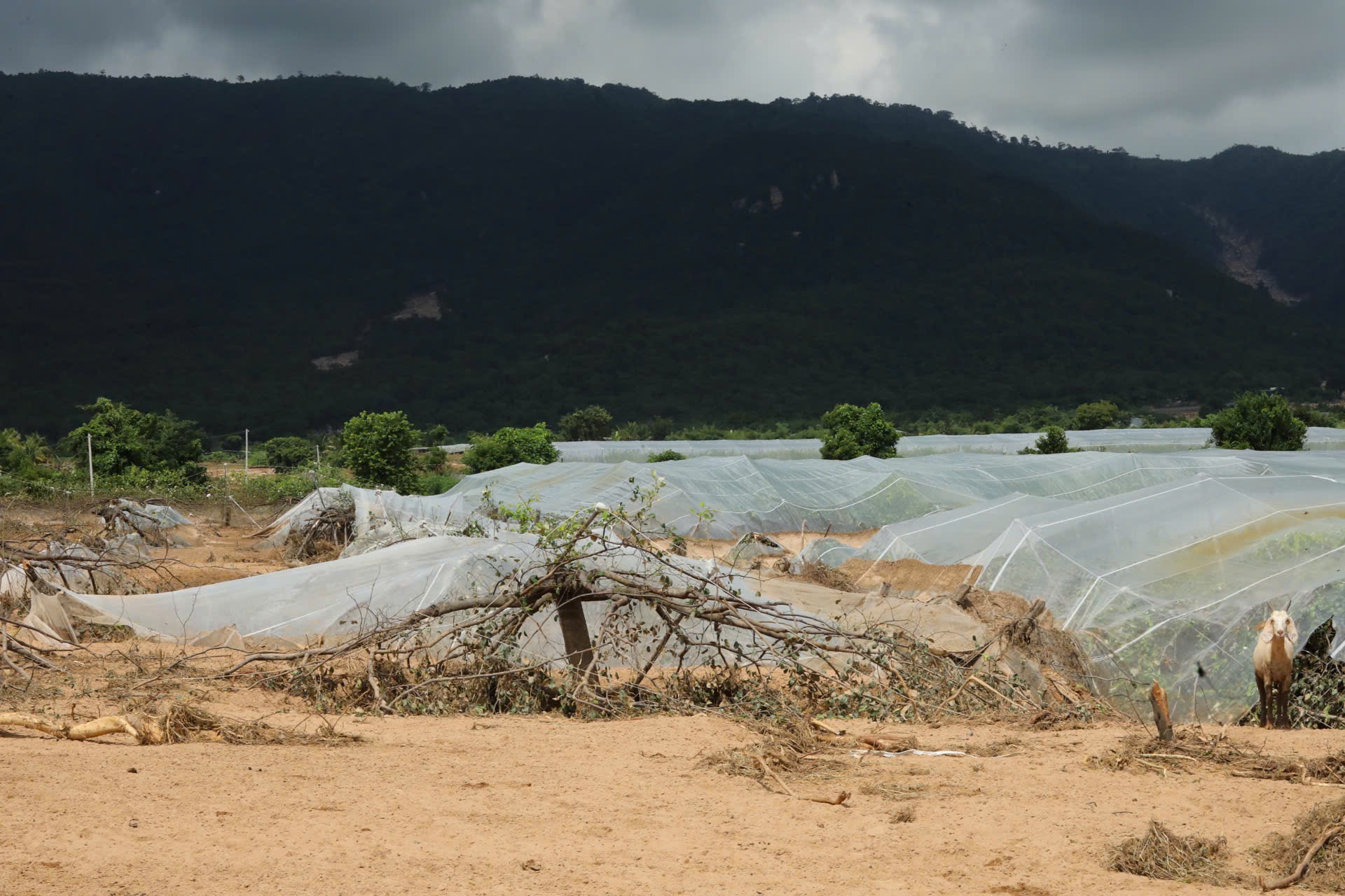 Trước đó, vào tối 1/11, hồ chứa nước do Công ty TNHH Thương mại Trang Trại Việt Phong Phú đắp trên trên núi Tân Lai, xã Tuy Phong bị vỡ, nước tràn xuống khu dân cư, cuốn 3 người cùng gia đình, trong đó bé gái 13 tuổi tử vong. Vụ vỡ hồ chứa nước của Công ty Việt Phong Phú cũng gây thiệt hại nặng về nhà cửa, tài sản và hoa màu của người dân khu vực này.