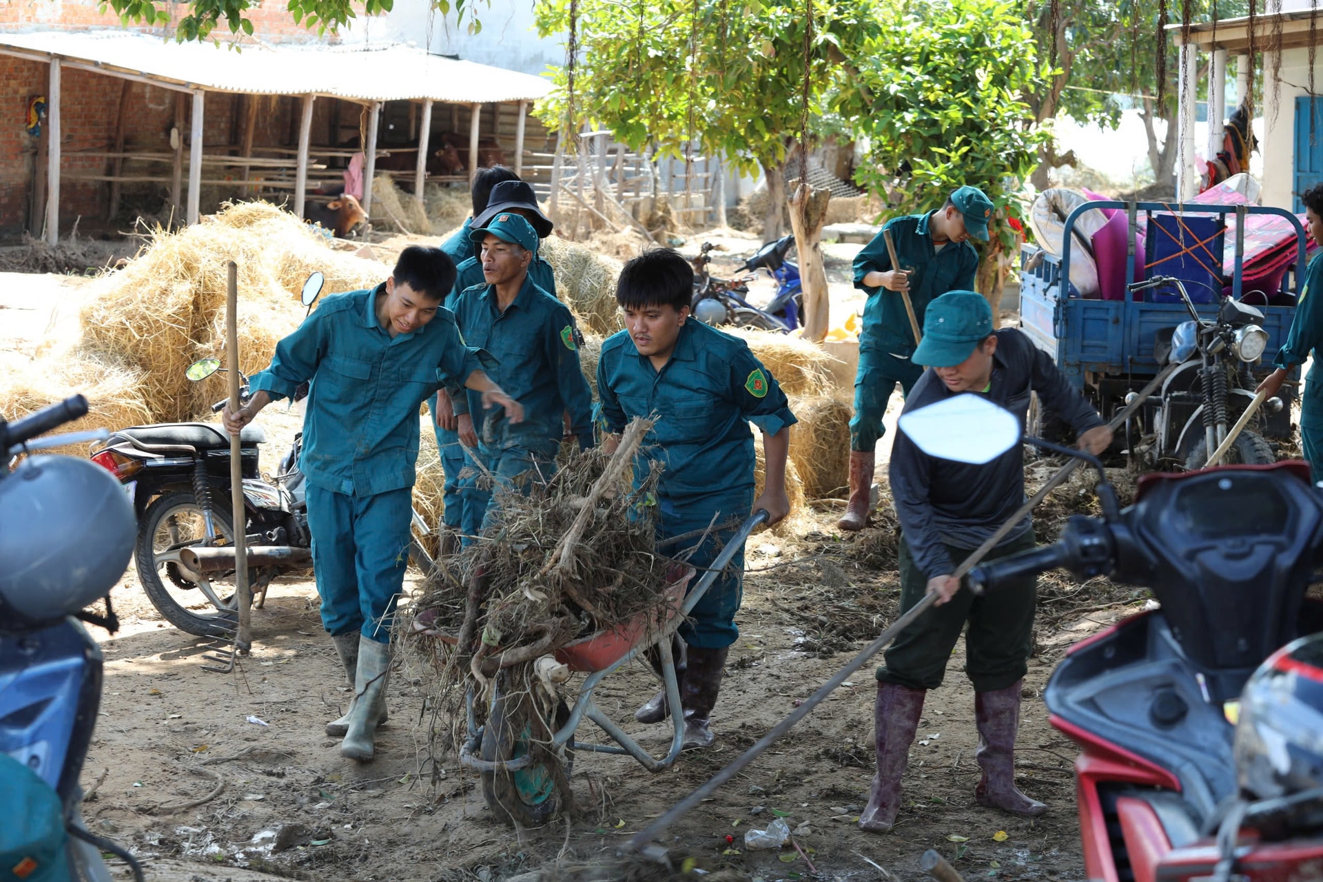 Lực lượng chức năng giúp người dân dọn dẹp sau vụ vỡ hồ chứa nước