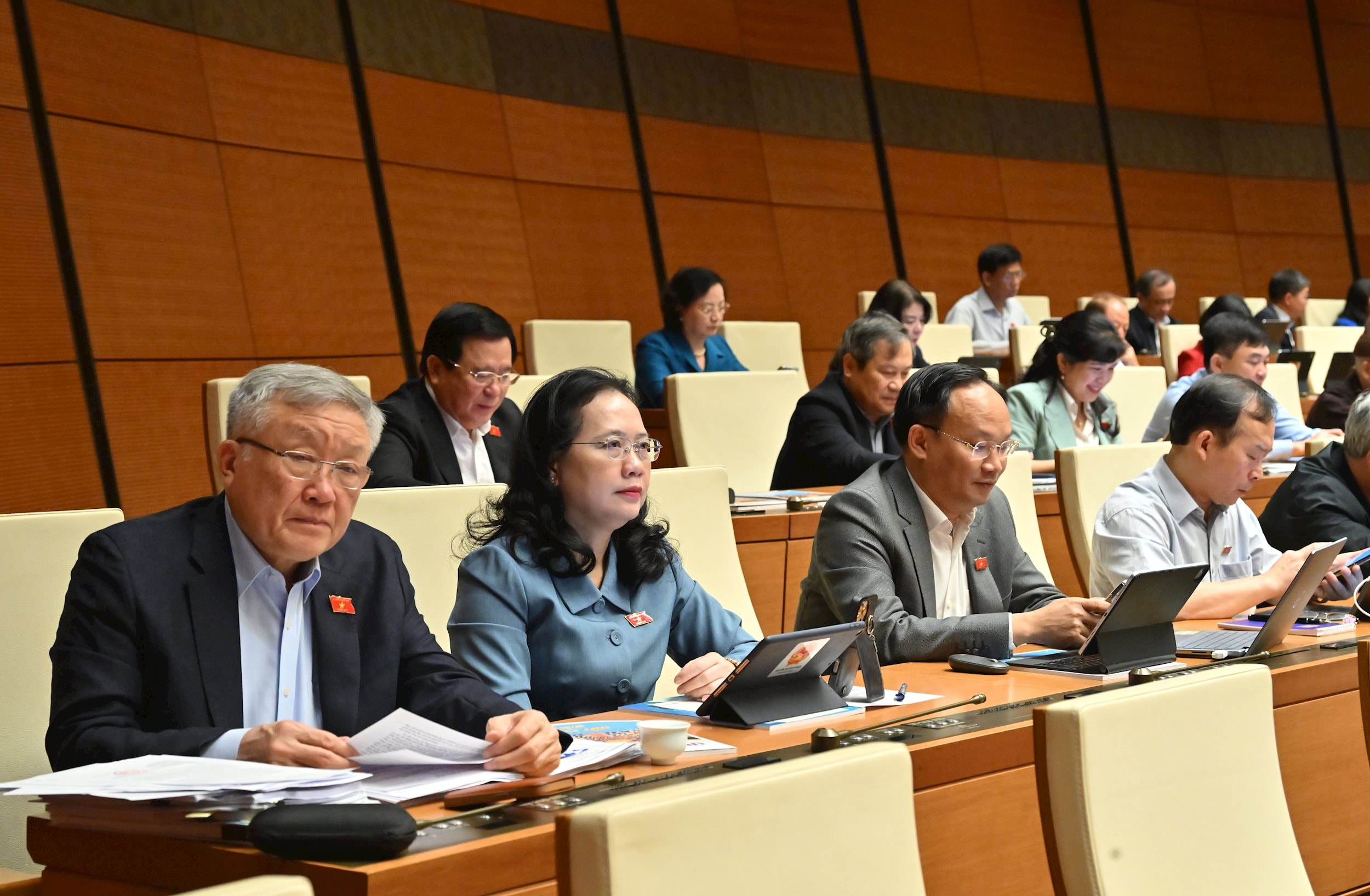 Biểu quyết thông qua Nghị quyết về dự toán ngân sách nhà nước năm 2026. Ảnh: Hồ Long
