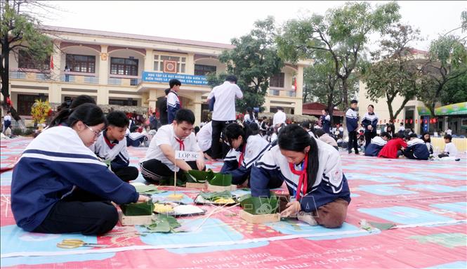 Tại các trường mầm non, Tết được “kể” bằng hình ảnh, màu sắc và những trải nghiệm giản dị. Đó là cành đào, cành mai, bánh chưng, mâm ngũ quả được trang trí từ trong lớp đến ngoài sân trường hoặc những bài thơ, bài hát, điệu múa về mùa Xuân, về Tết; những câu chúc Tết ông bà, cha mẹ mà cô giáo tận tình dạy bảo. Với bậc tiểu học, trải nghiệm Tết được tổ chức bài bản hơn, gắn với giáo dục phẩm chất, năng lực học sinh. Ở bậc Trung học cơ sở và Trung học phổ thông, học sinh tham gia trải nghiệm với sự chủ động, tự tin rõ nét hơn. Thông qua các hoạt động: trang trí Tết, thi gói bánh chưng, sân khấu hóa các phong tục ngày Tết… giúp học sinh phát huy khả năng sáng tạo, làm việc nhóm và kỹ năng thuyết trình.