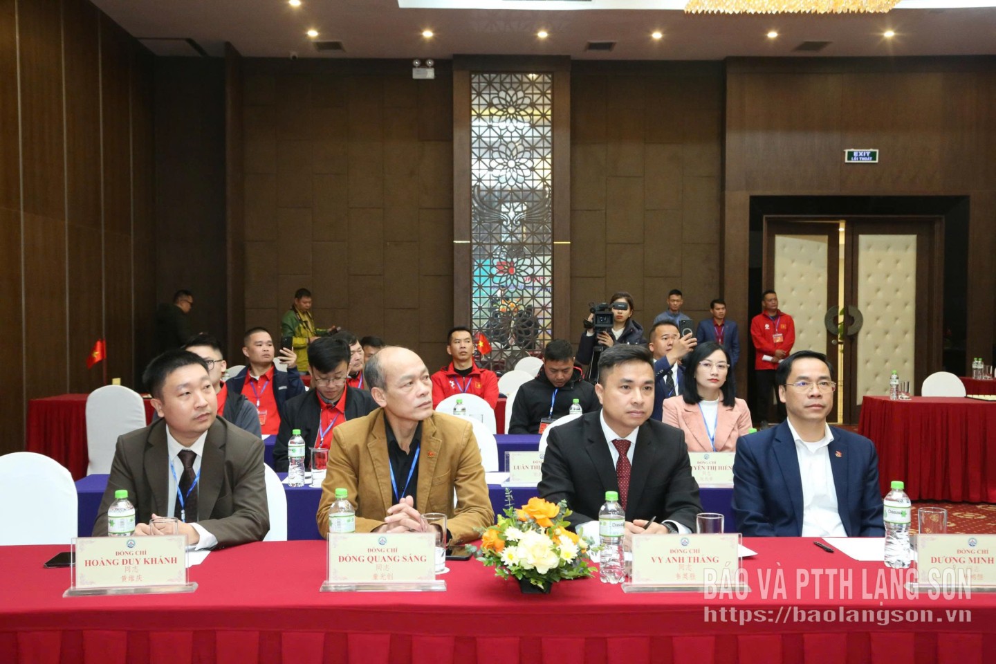 Lãnh đạo Sở Văn hóa, Thể thao và Du lịch Lạng Sơn (Việt Nam) và Cục Văn hóa, Du lịch, Thể thao, Phát thanh và Truyền hình thành phố Bằng Tường, Quảng Tây (Trung Quốc) trao cờ lưu niệm cho đại diện hai đội tuyển tham gia thi đấu