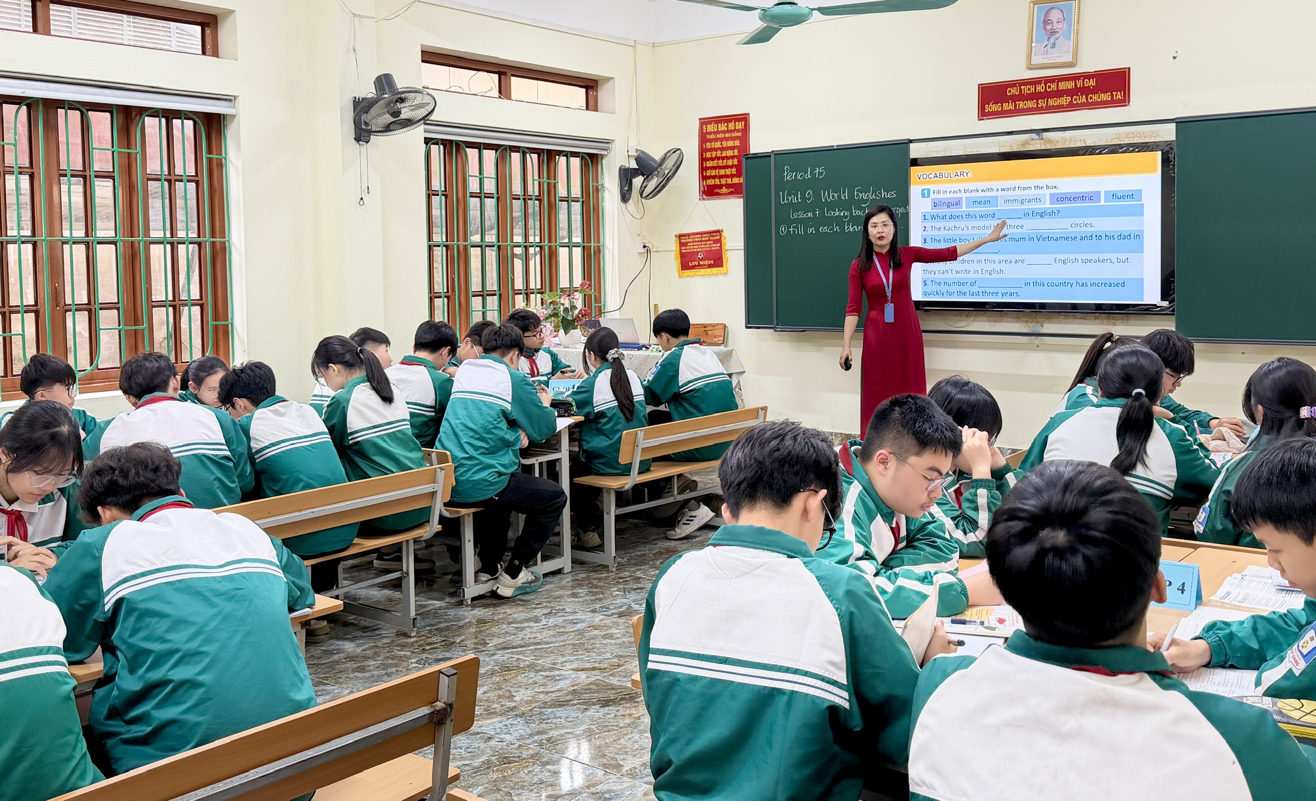 Giáo viên thực hiện tiết dạy minh họa môn Tiếng Anh.