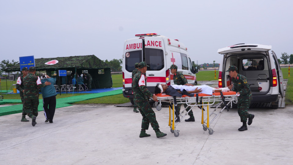 Lực lượng Quân y hai nước Việt Nam-Campuchia phối hợp diễn tập Quân y chung. (Ảnh: Minh Phú/TTXVN)