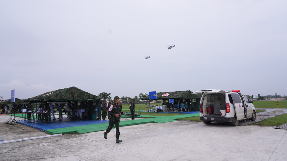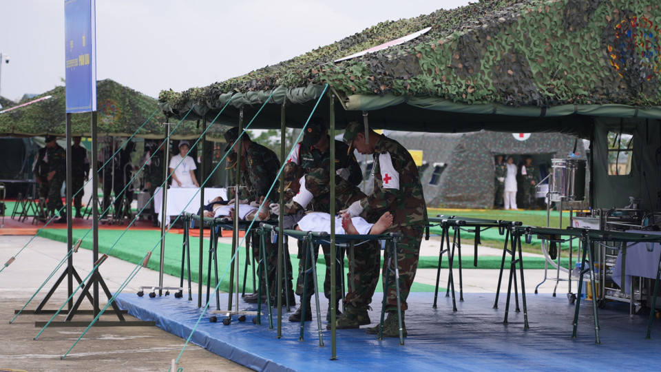 Quang cảnh buổi diễn tập Quân y chung của Quân đội 2 nước Việt Nam – Campuchia. (Ảnh: Minh Phú/TTXVN)