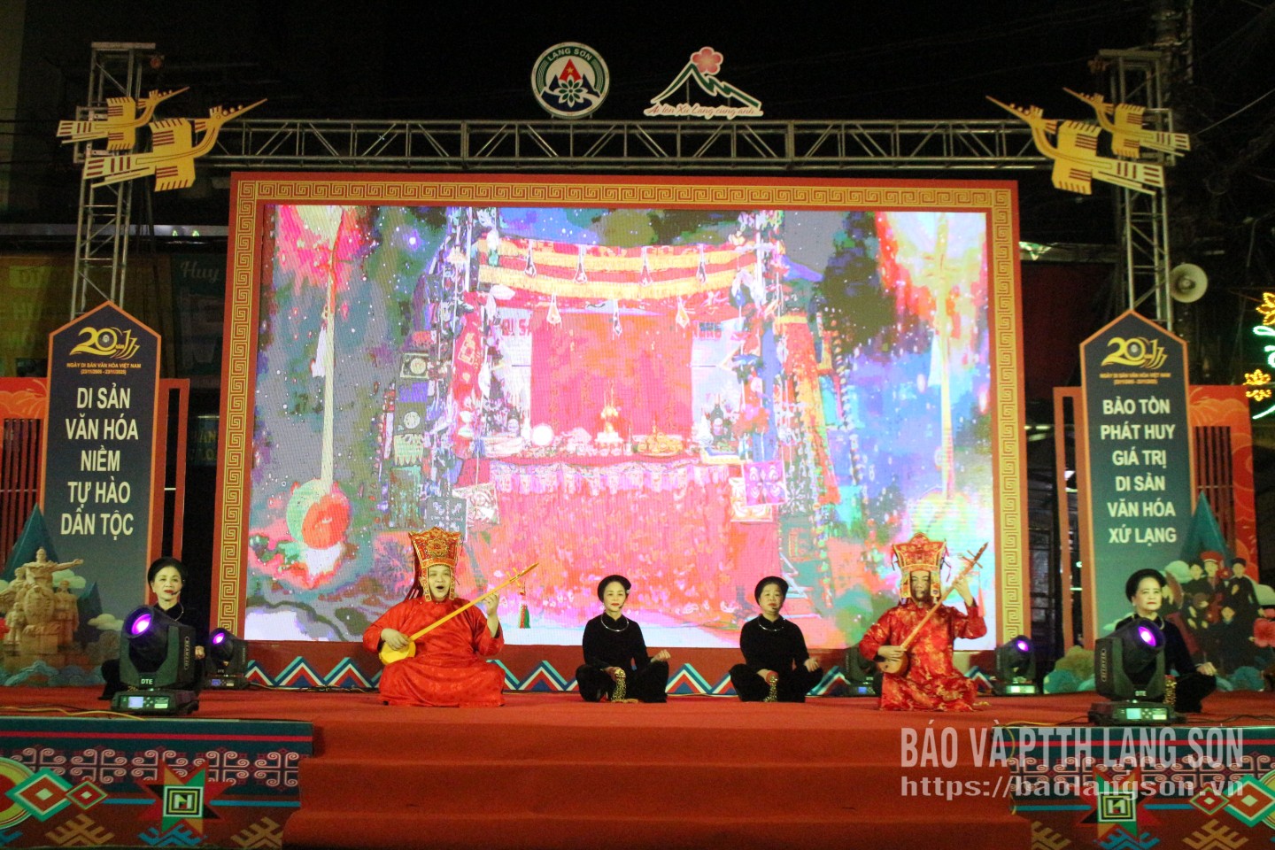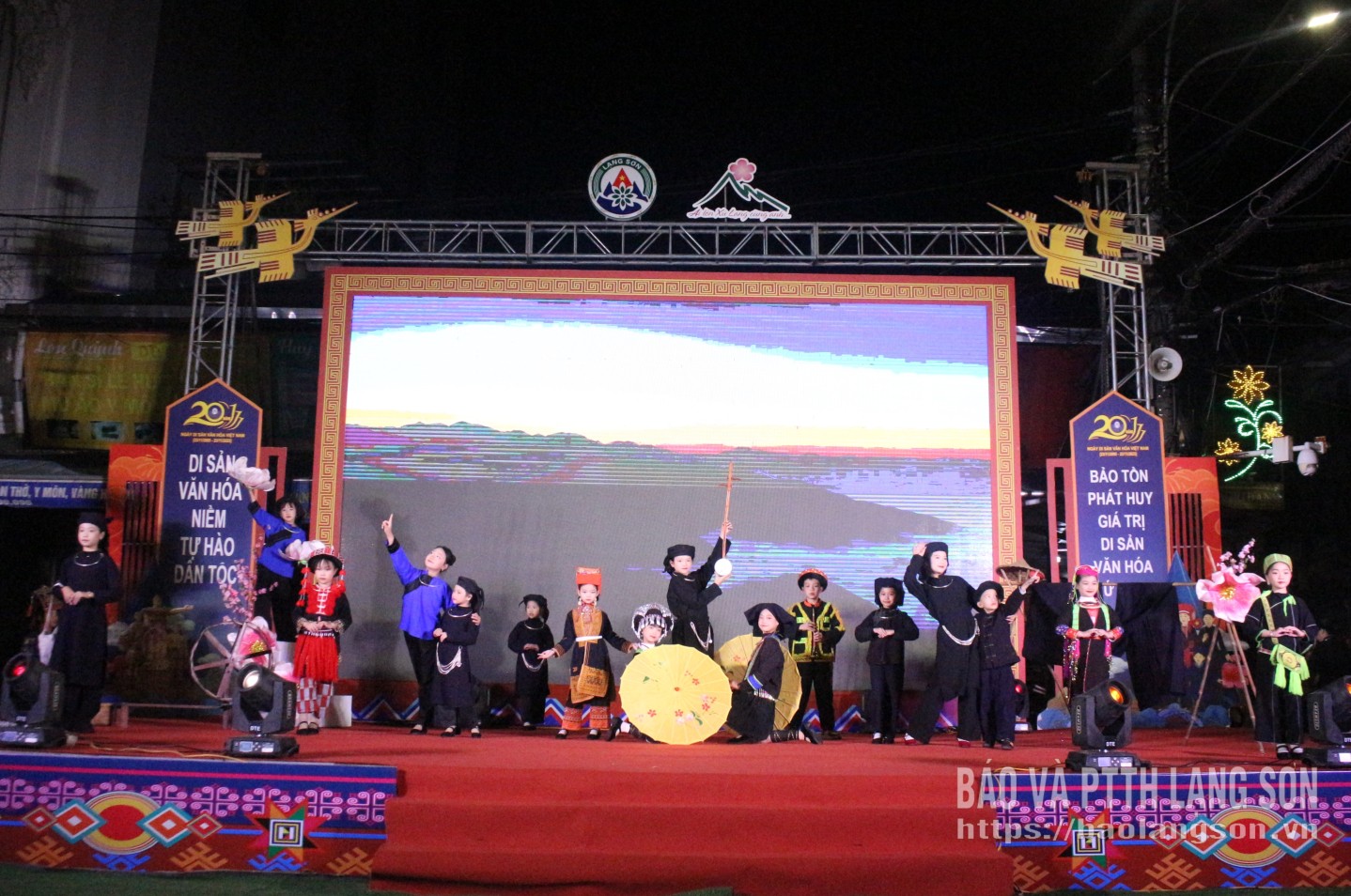Trong chương trình, các đại biểu cùng người dân trên địa bàn đã theo dõi phóng sự quảng bá các giá trị văn hóa dân tộc, di sản văn hóa vật thể, phi vật thể của các dân tộc tỉnh Lạng Sơn; thưởng thức 8 tiết mục hát, múa ở các thể loại Then, Sli, hát mới do các nghệ nhân nhân dân, nghệ nhân ưu tú, nghệ nhân trẻ, các diễn viên Trung tâm Văn hóa tỉnh, thiếu nhi trên địa bàn biểu diễn.
