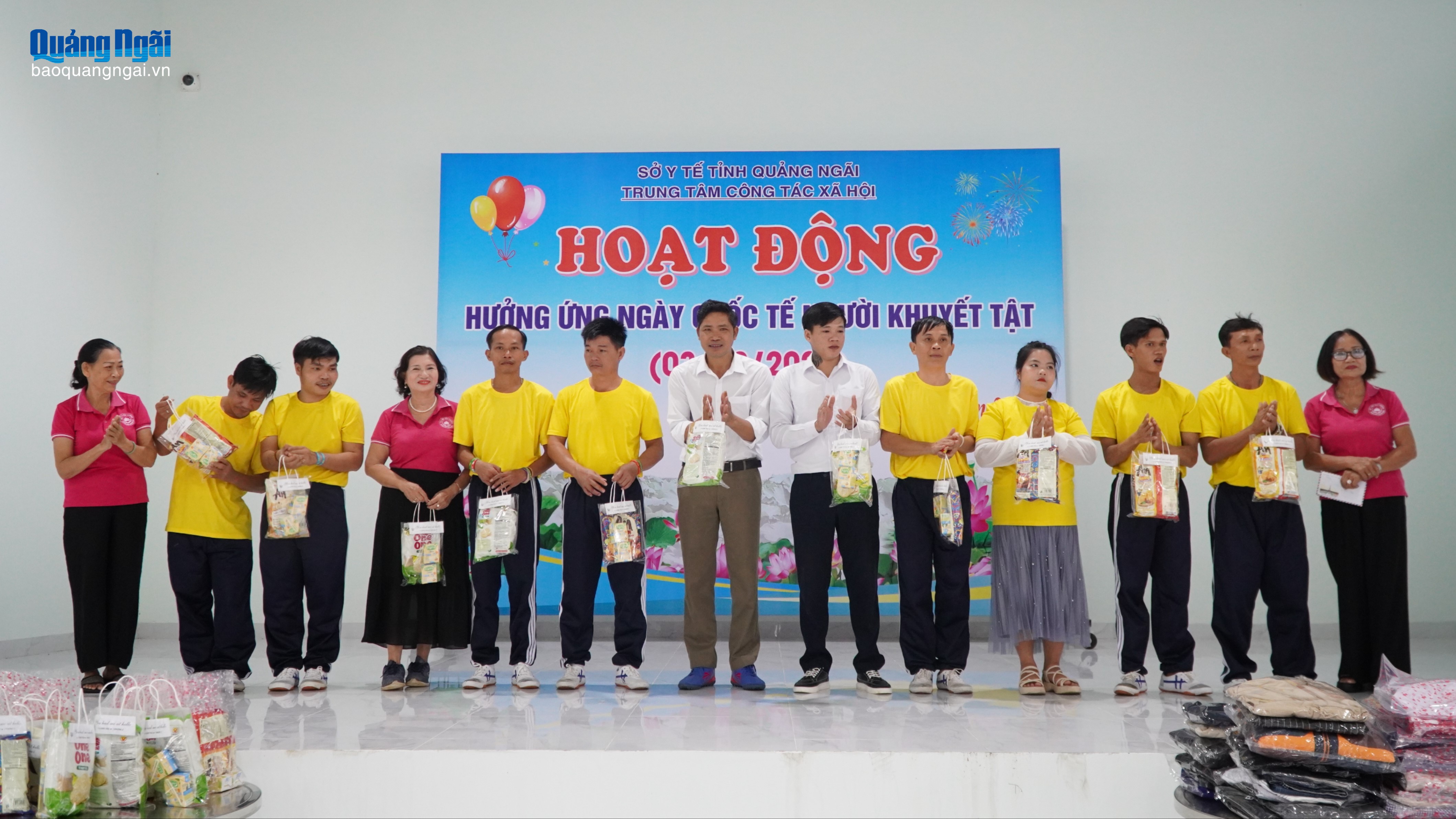 Chiều 3/12, Trung tâm Công tác xã hội (Sở Y tế) phối hợp với các tổ chức, cá nhân tổ chức chương trình giao lưu và tặng quà 85 trường hợp khuyết tật thần kinh, tâm thần đang được chăm sóc, nuôi dưỡng tại cơ sở 2 (xã Nghĩa Giang).