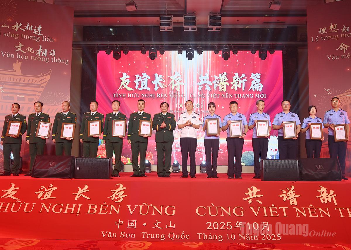 Kết thúc chương trình, hai trưởng đoàn đã trao danh hiệu “Sứ giả hữu nghị” cho 12 đồng chí cán bộ có thành tích xuất sắc góp phần củng cố tình hữu nghị giữa hai lực lượng trong thời gian qua.