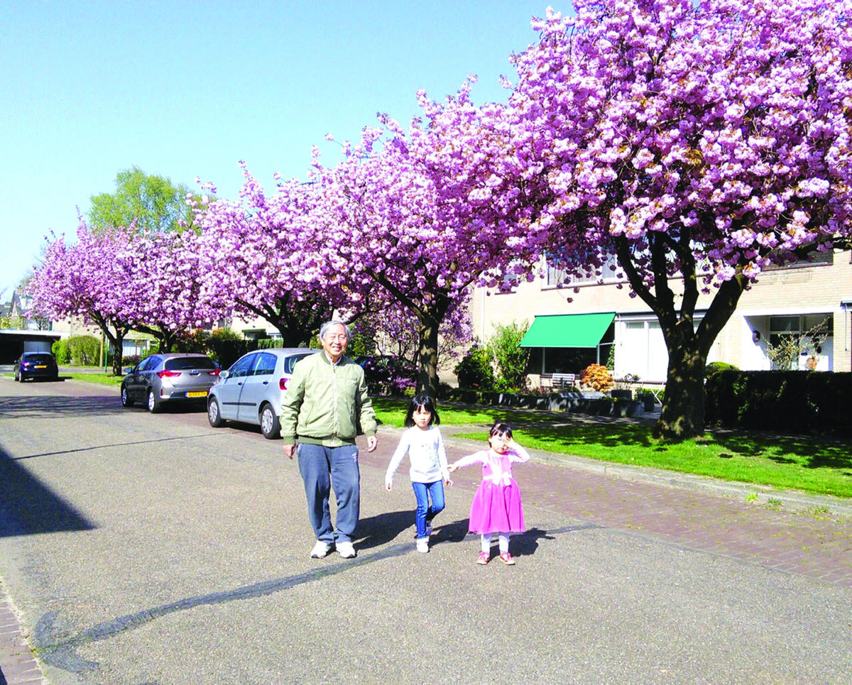 GS Đàm Trung Đồn chụp ảnh cùng các cháu trong chuyến thăm Nhật Bản năm 2019.