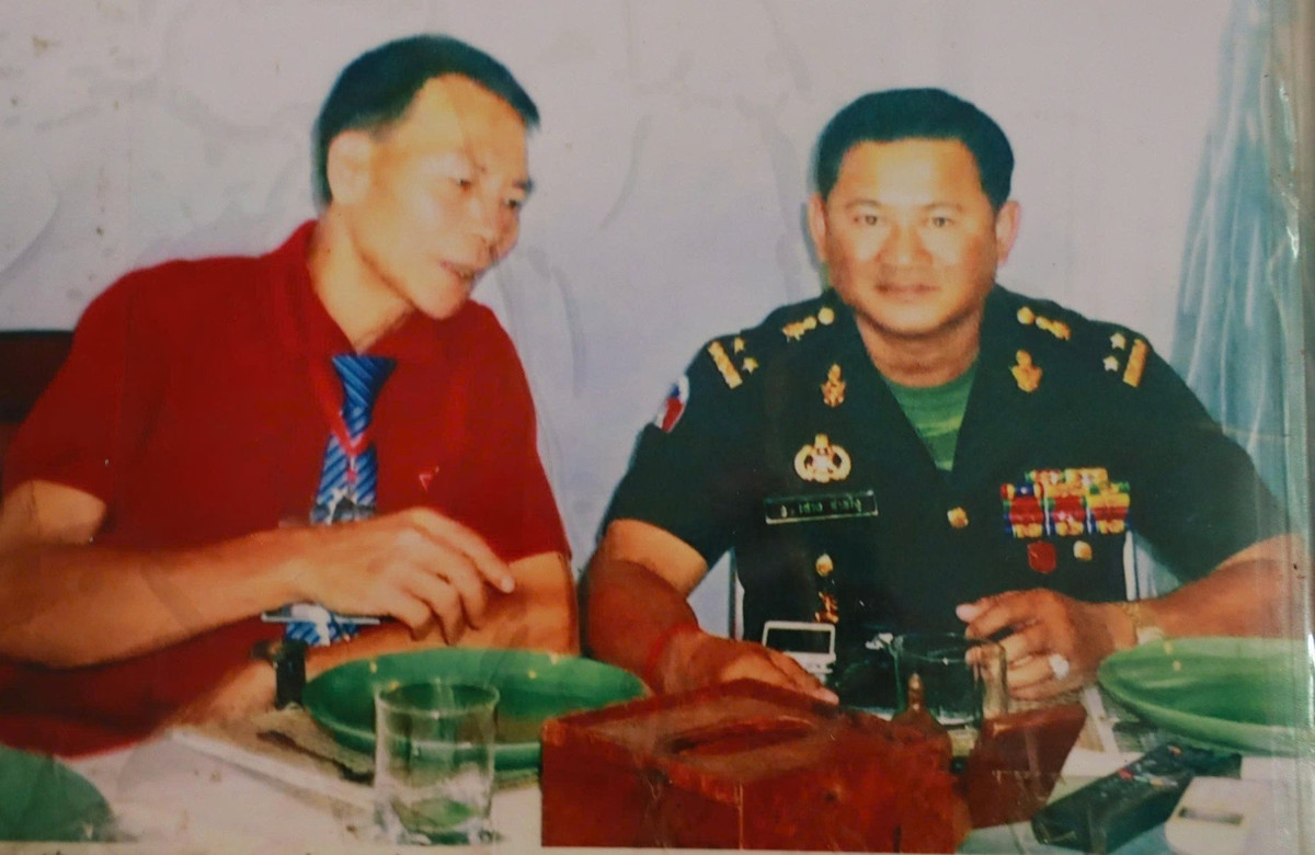 Ông Thiều chụp ảnh cùng Thứ trưởng Bộ Quốc phòng Campuchia trong chuyến sang Campuchia diệt chuột.