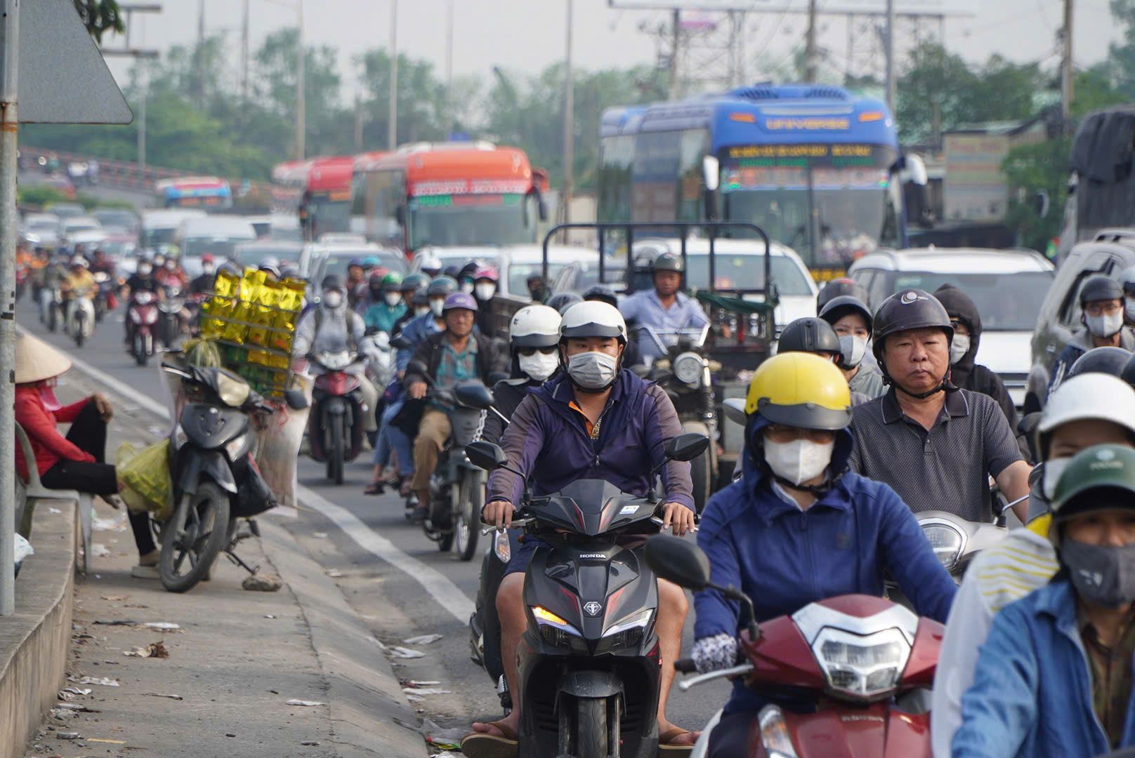 Người dân ùn ùn rời TP.HCM về quê đón Tết, giao thông tại cửa ngõ thành phố đông đúc từ sáng sớm.