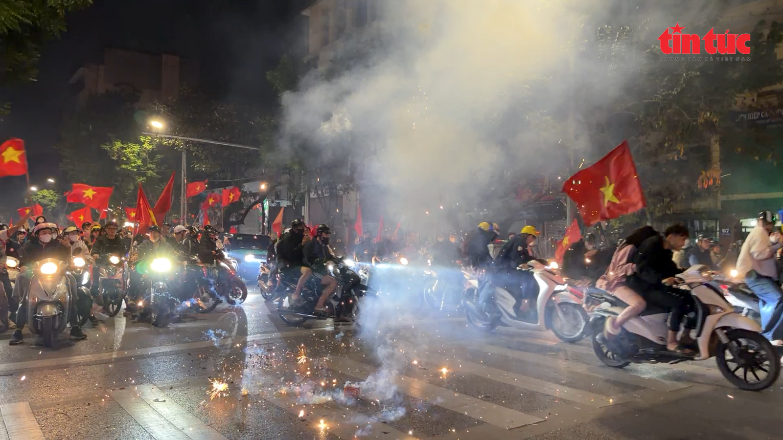 Video pháo hoa bắn giữa ngã tư Hà Nội sau chiến thắng của U22 Việt Nam vô địch SEA Games 33: