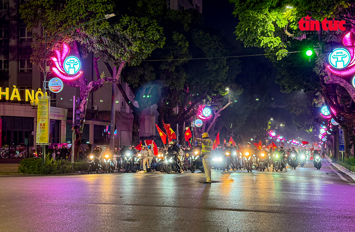 Niềm vui bóng đá lan tỏa mạnh mẽ trên các tuyến phố trung tâm Hà Nội.