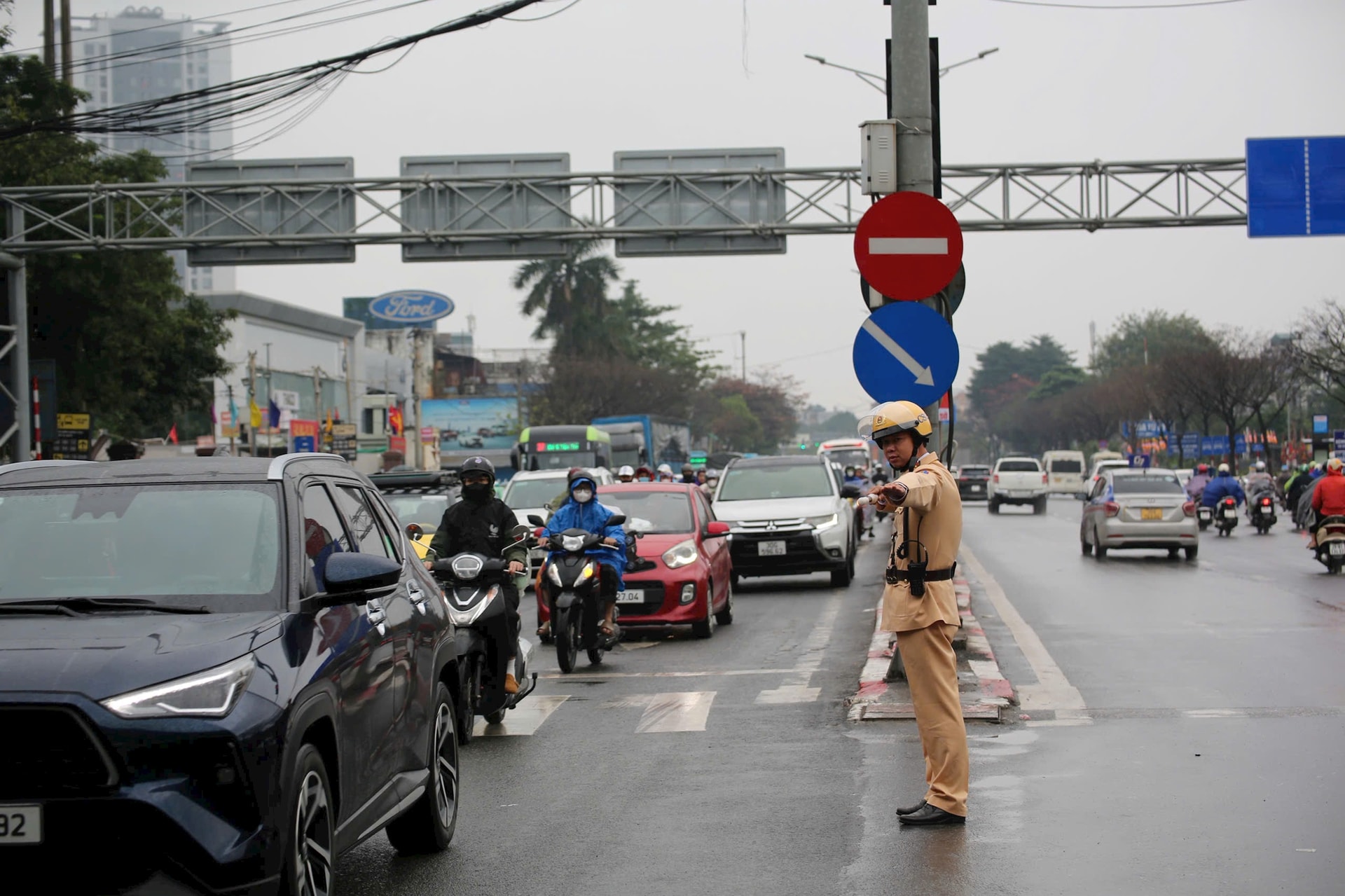 Ngay từ sáng mùng 6 Tết, áp lực giao thông tại các tuyến đường xuyên tâm và cửa ngõ Thủ đô gia tăng, tạo áp lực lên hệ thống giao thông. Đặc biệt, trong ngày, Hà Nội có mưa nhỏ khiến việc di chuyển của người dân cũng như công tác điều tiết, phân luồng của lực lượng chức năng gặp khó khăn.