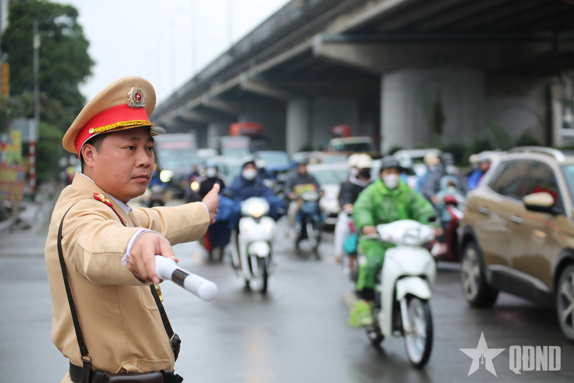 Thực hiện kế hoạch bảo đảm trật tự, an toàn giao thông trước, trong và sau Tết Nguyên đán, đặc biệt thời điểm cuối kỳ nghỉ Tết Bính Ngọ 2026, Phòng Cảnh sát giao thông (CSGT) Công an thành phố Hà Nội đã triển khai đồng bộ các phương án điều tiết từ sớm. Nhiều tổ công tác được bố trí tại các nút giao trọng điểm, khu vực bến xe, đường vành đai, cầu vượt… để hướng dẫn, phân làn, không để xảy ra ùn tắc kéo dài.
