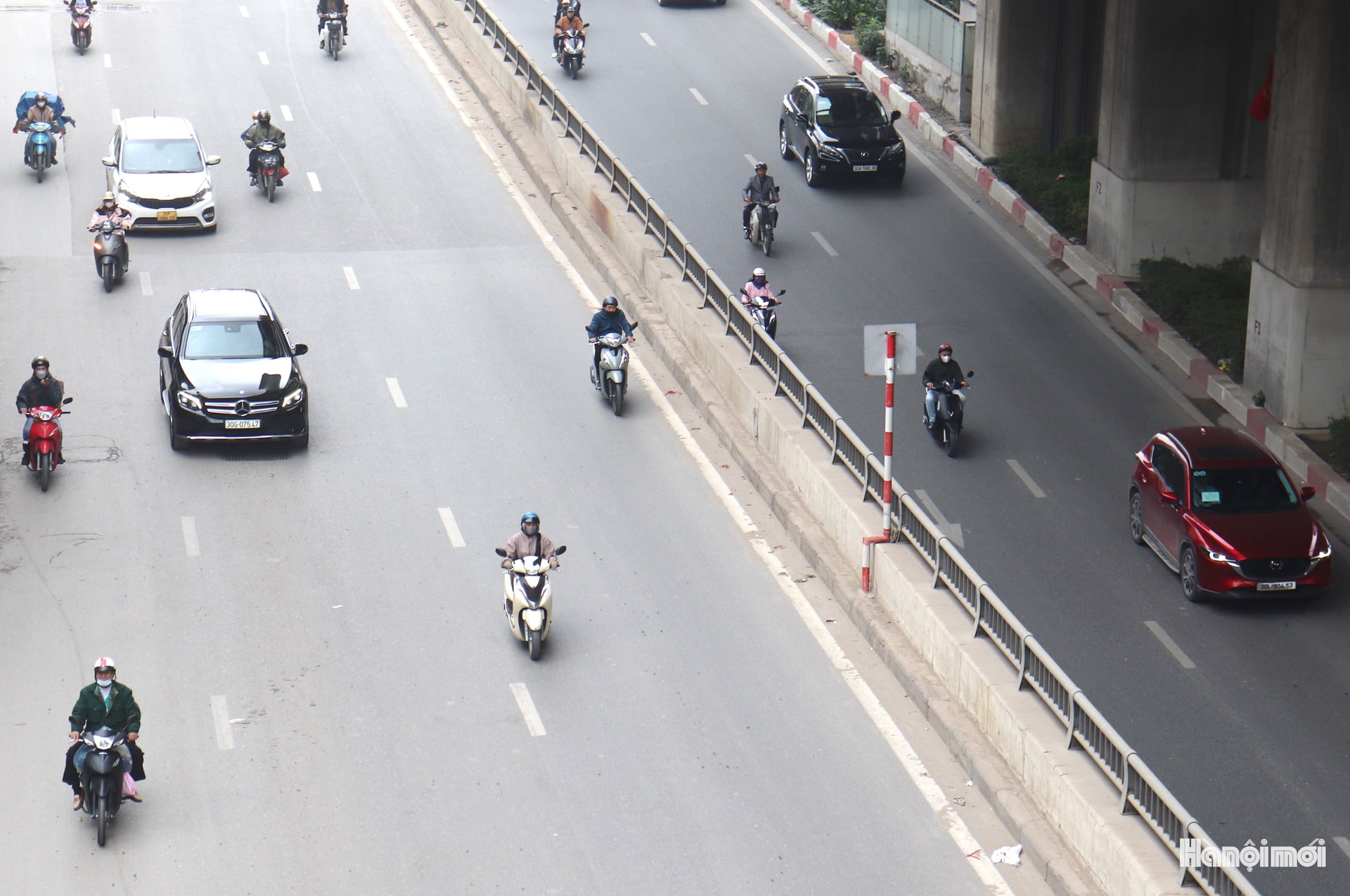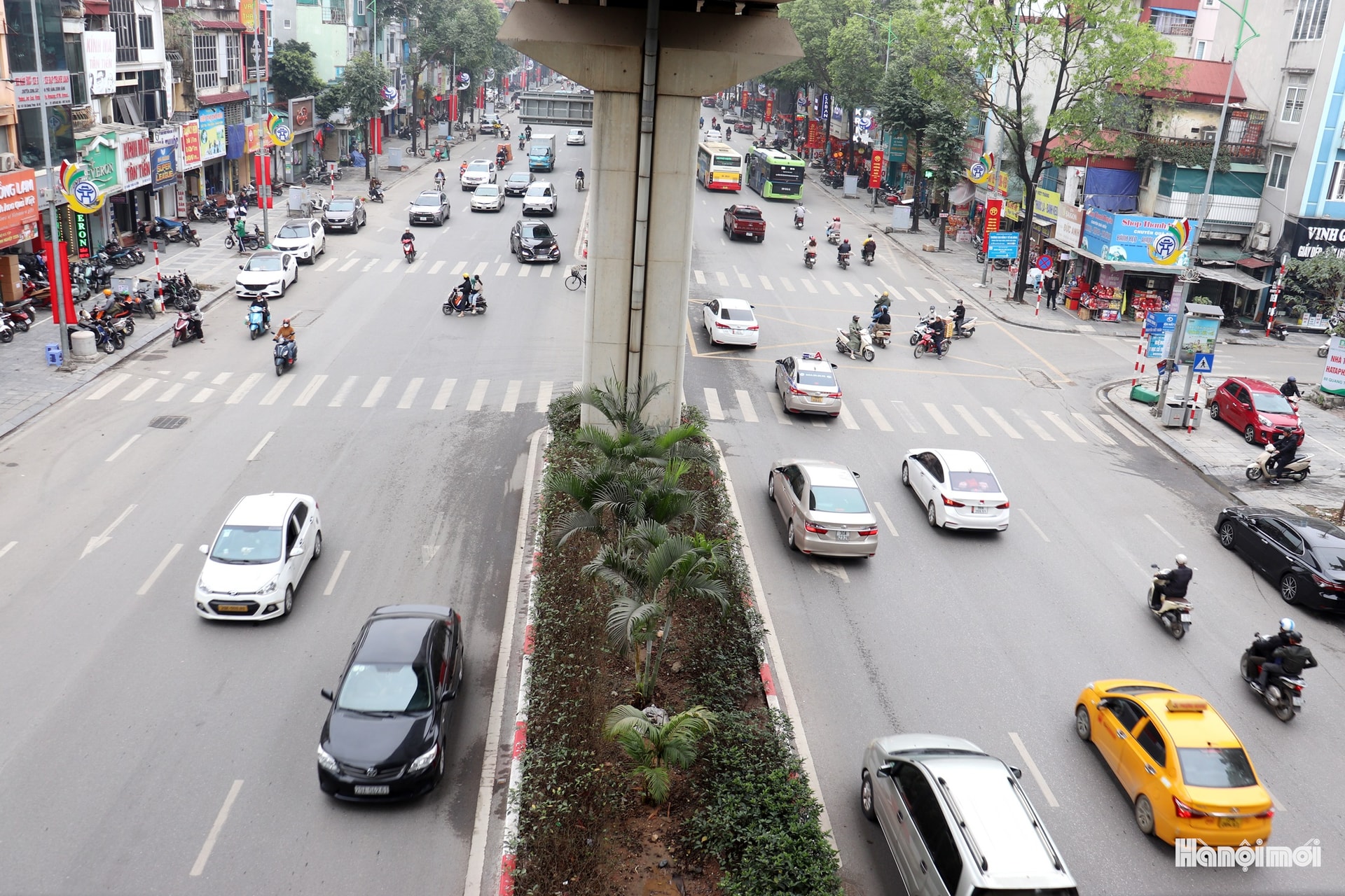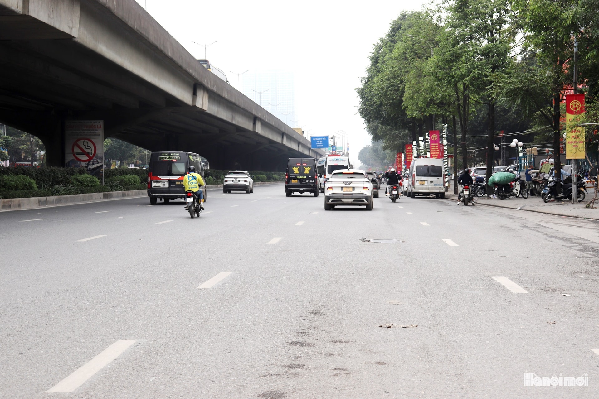Tại các trục chính như Quang Trung (phường Hà Đông), Nguyễn Trãi (phường Thanh Xuân) và đường Khuất Duy Tiến, mật độ phương tiện giảm rõ rệt so với ngày thường. Dòng xe di chuyển ổn định, không xảy ra tình trạng ùn tắc kéo dài. Ảnh: Tuấn Điệp