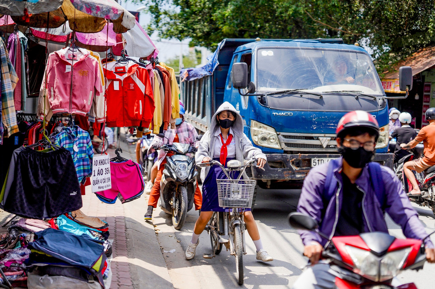Xe tải, xe máy thì luồn lách giữa dòng người, tạo nên nguy cơ tai nạn thường trực. Với những con đường nhỏ, hẹp như Dân Công Hỏa Tuyến, chỉ cần một xe dừng lại mua hàng, một chiếc ba gác đậu giao đồ là lập tức để lại tình trạng phương tiện ùn ứ kéo dài, thậm chí tê liệt.