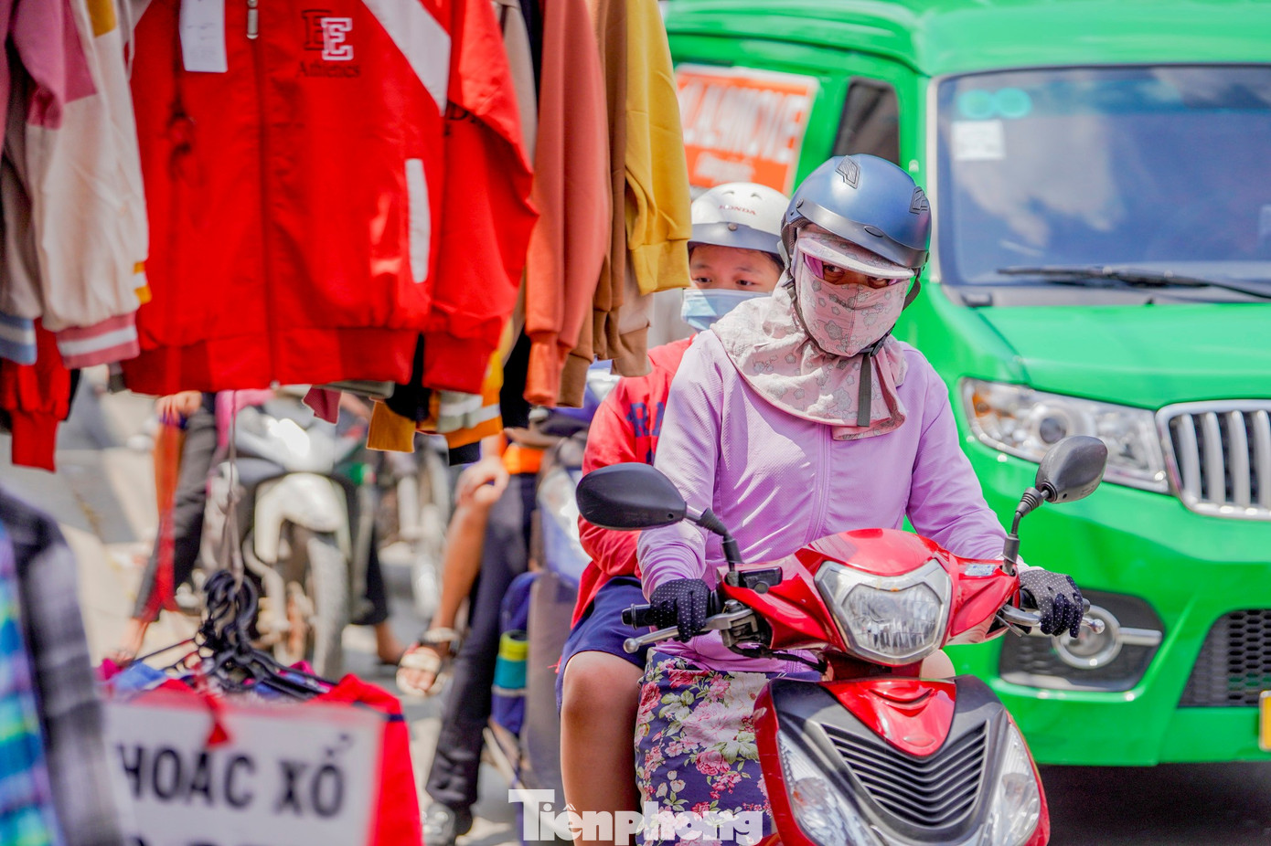 Theo ghi nhận, tuyến đường này chỉ rộng chừng 6–7m nhưng hàng ngày lại biến thành “chợ di động”. Dù chợ Nữ Dân Công chỉ cách vài trăm mét, nhiều người vẫn chọn bán hàng ngay trên vỉa hè.