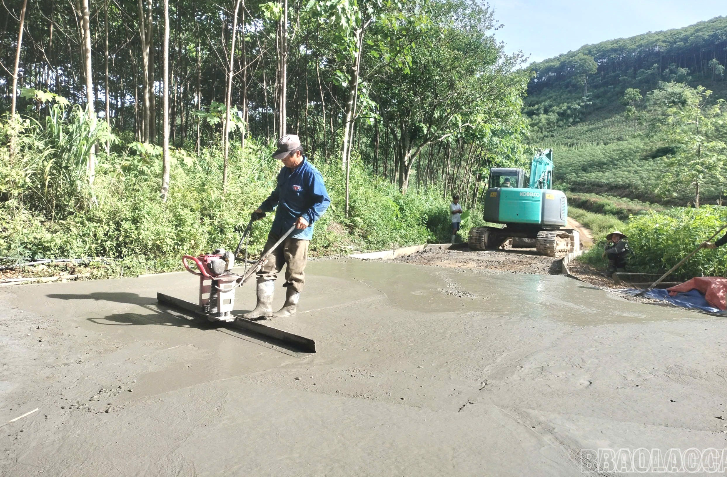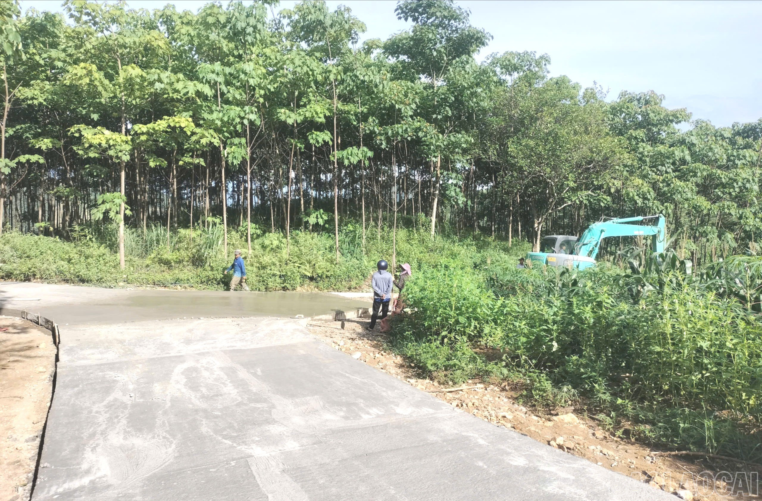 Nhân dân tham gia đổ bê tông, xây dựng tuyến đường giao thông theo phương châm “Nhà nước và Nhân dân cùng làm”.