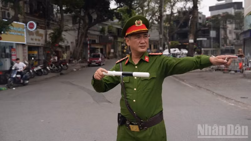 Lực lượng chức năng có mặt từ sáng sớm, hướng dẫn người dân di chuyển theo các tuyến thay thế. (Ảnh: HỒNG QUÂN)