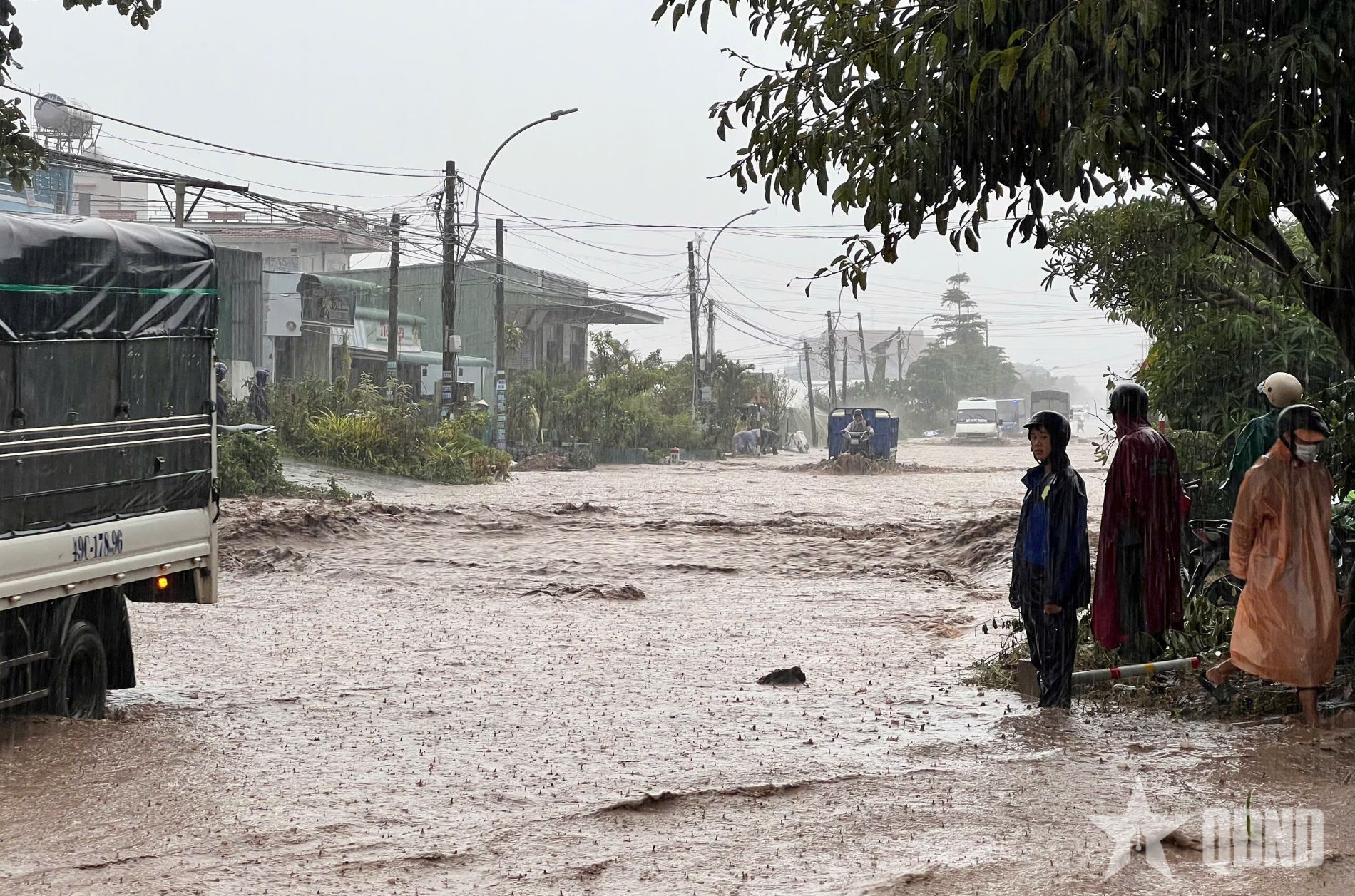 Quốc lộ 27 đoạn qua xã D'ran bị ngập nặng chiều 2-12.
