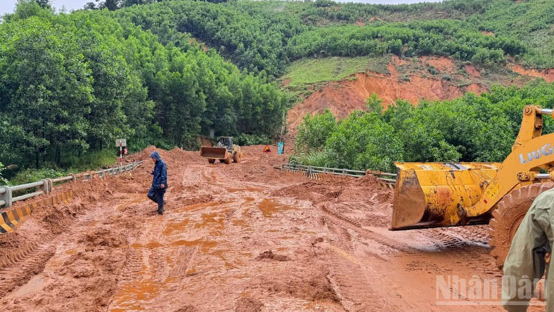 Công tác khắc phục hậu quả mưa lũ được thực hiện 24/24 giờ nhằm mục tiêu thông đường sớm nhất có thể.
