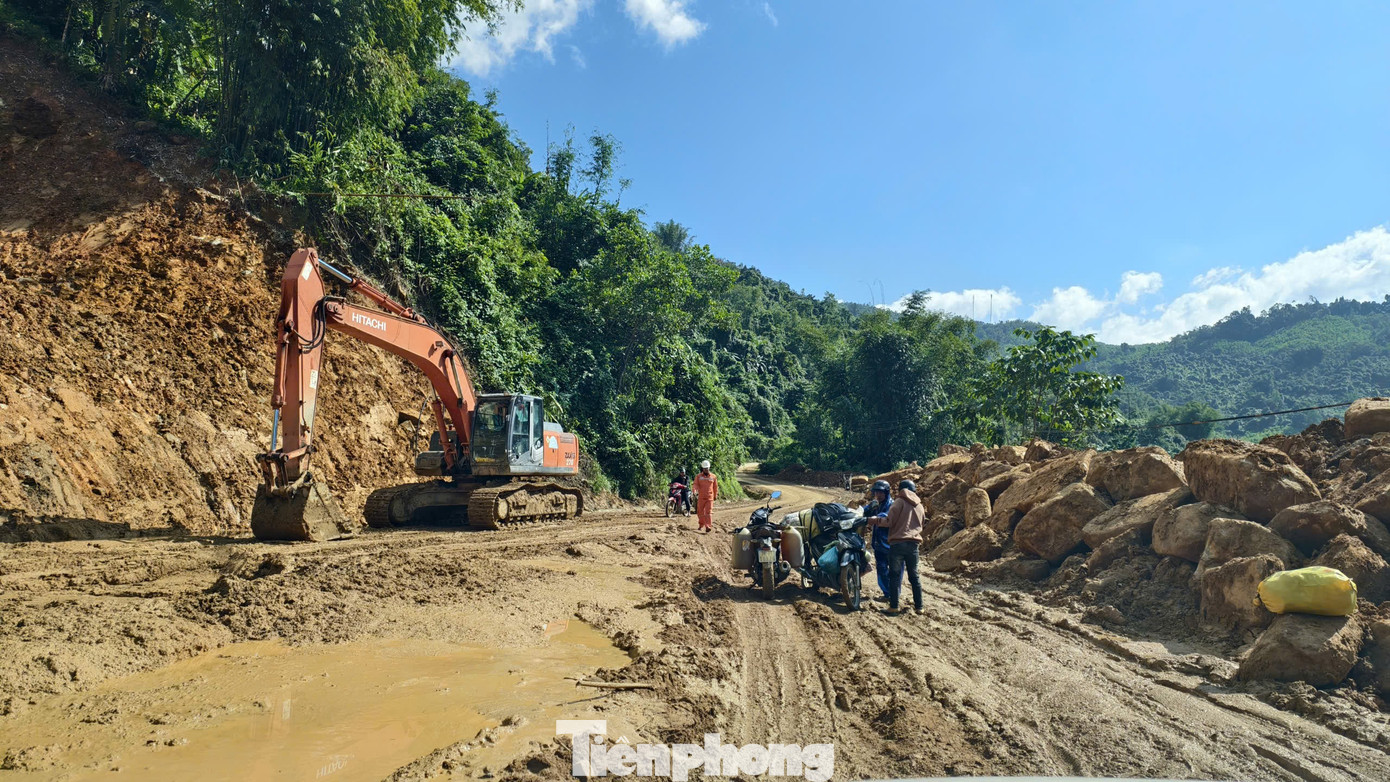 Chính quyền xã Tây Trà cho biết, trong các tuyến đường do xã quản lý bị sạt lở, có tuyến từ trung tâm xã đi khu vực Trà Xinh cũ bị hư hỏng nặng nhất, buộc phải ưu tiên khắc phục để bảo đảm thông suốt giao thông.