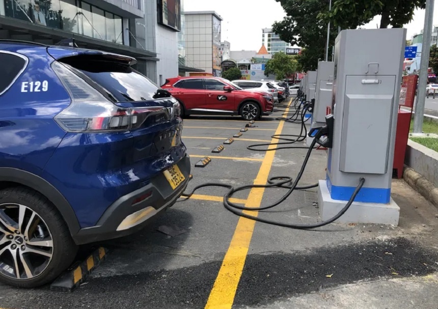 Xe ô tô điện sạc pin trên một số tuyến phố.