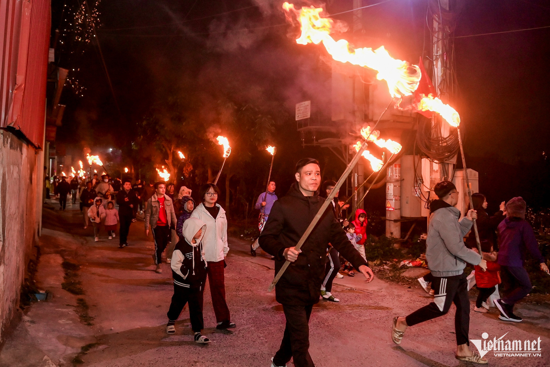 Người dân Ninh Bình (Nam Định cũ) đi rước lửa cầu may trong đêm giao thừa