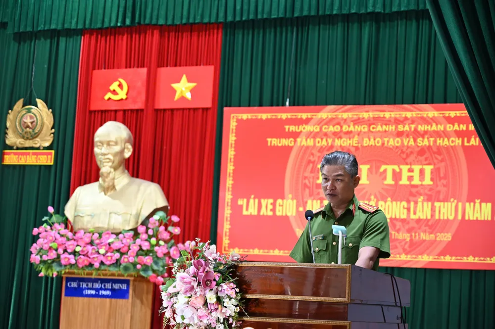Phát biểu chỉ đạo tại hội thi, Thượng tá Lê Nguyễn Quốc Việt, Phụ trách Trung tâm Dạy nghề, đào tạo và sát hạch lái xe - Trường cao đẳng Cảnh sát nhân dân II, Bộ Công an ghi nhận sự tham gia của các đơn vị bạn, đồng thời nhấn mạnh yêu cầu thi phải được tổ chức công bằng, minh bạch và khách quan.