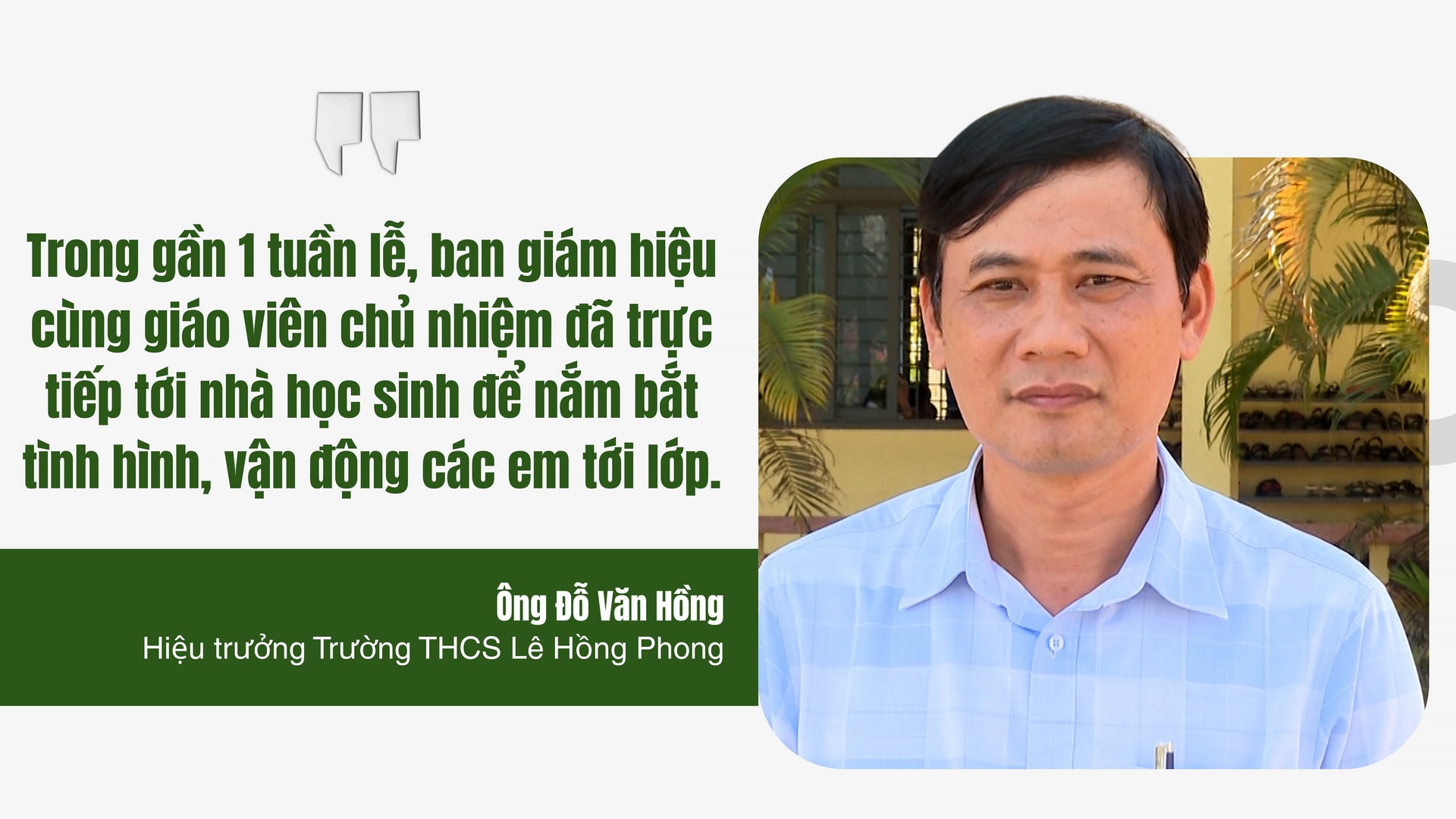 Sau khi kết thúc học kỳ, thầy Huy cùng một số giáo viên chủ nhiệm khác tìm tới từng nhà học sinh để vận động các em trở lại lớp. Quá trình nói chuyện, giáo viên không trách móc mà chỉ nhẹ nhàng phân tích để phụ huynh hiểu, đồng hành cùng nhà trường.
