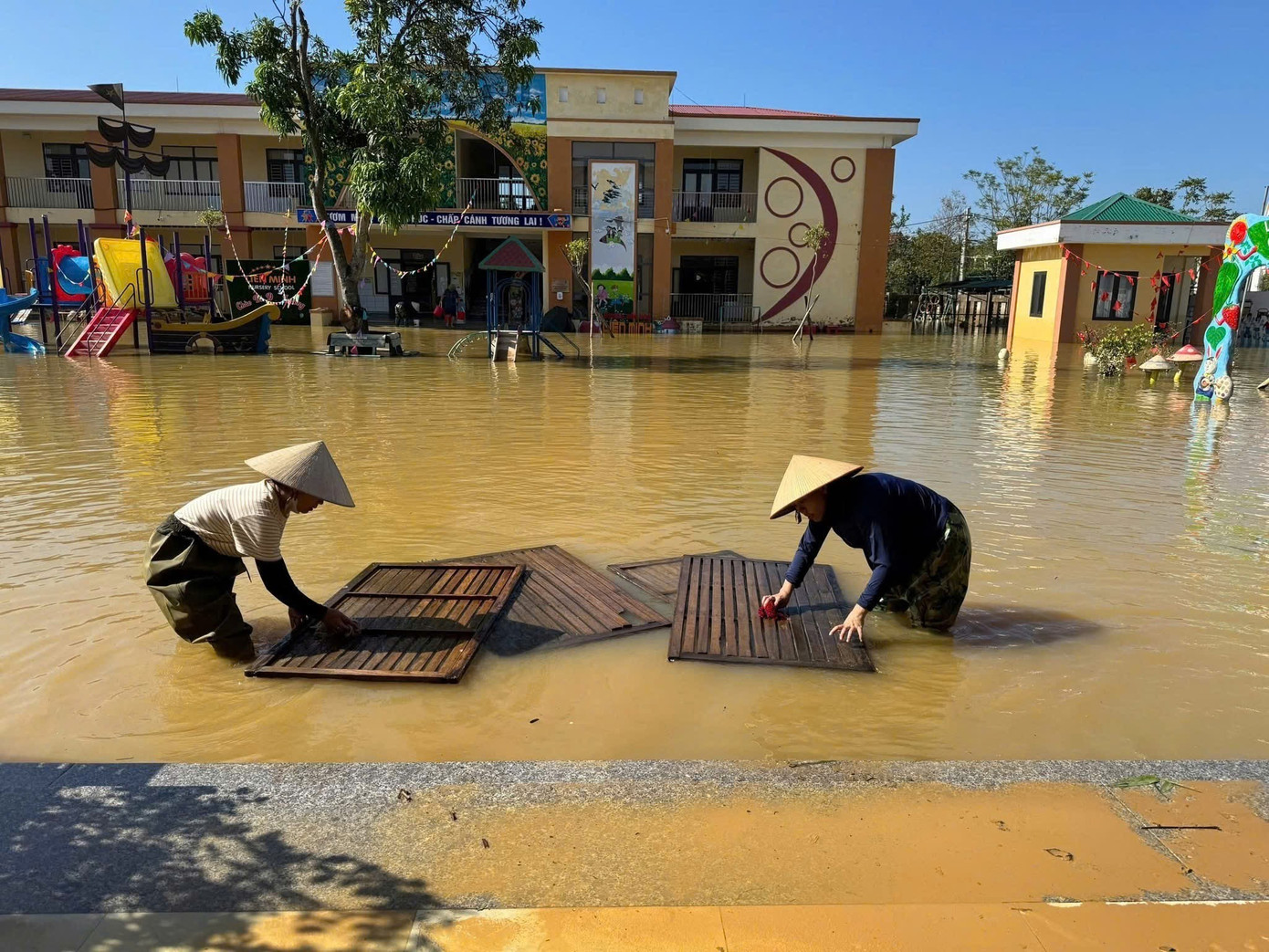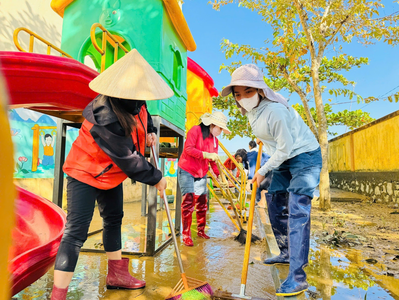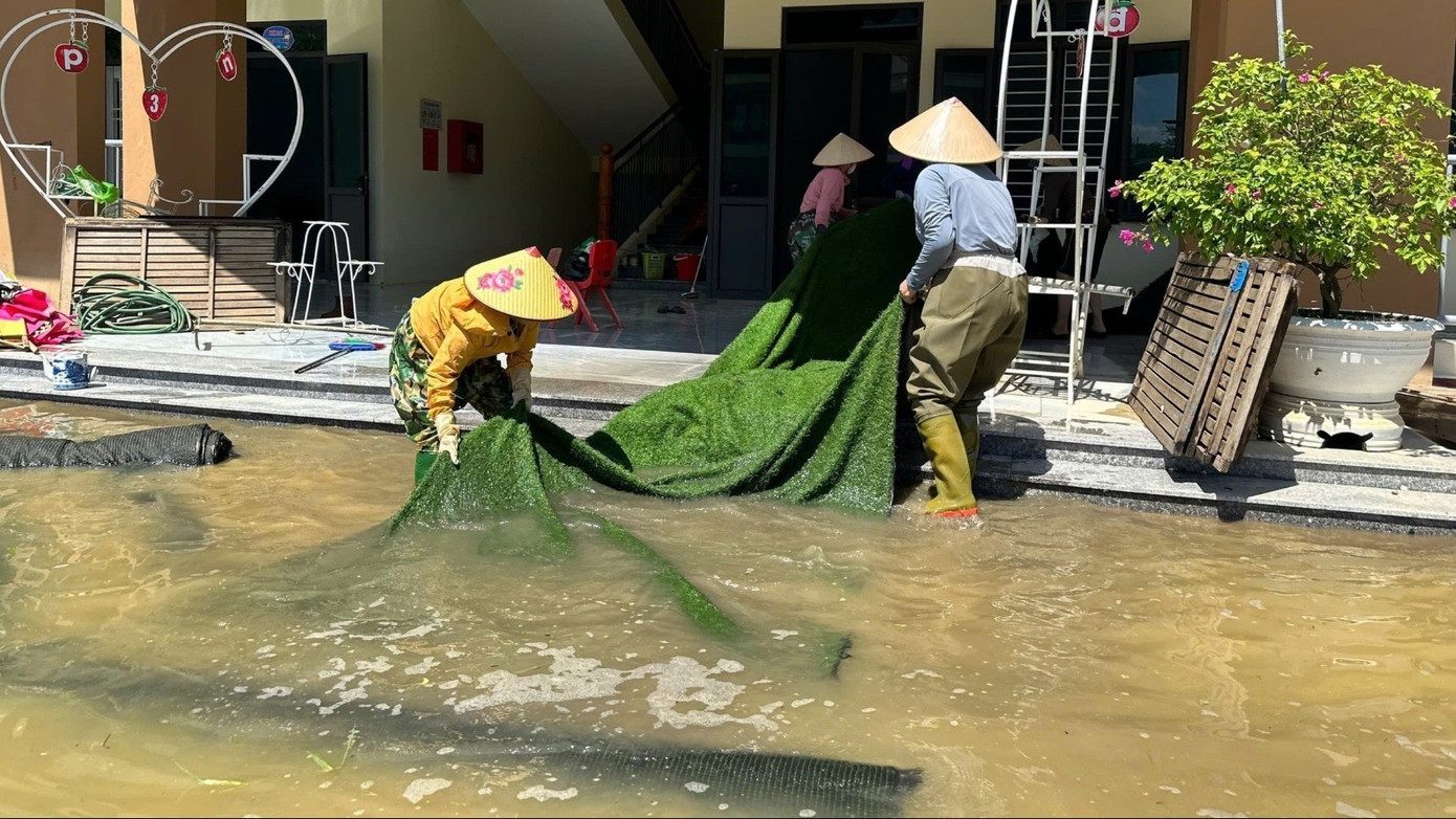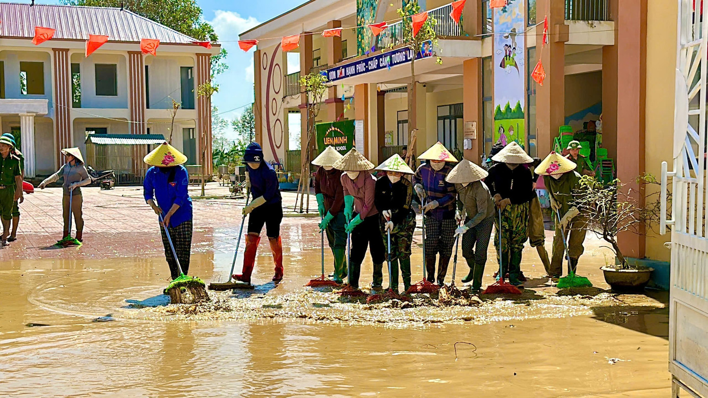 Với phương châm "nước rút đến đâu dọn dẹp ngay đến đó", các trường học vùng lũ đang khẩn trương dọn dẹp để sớm đón học sinh trở lại trường.