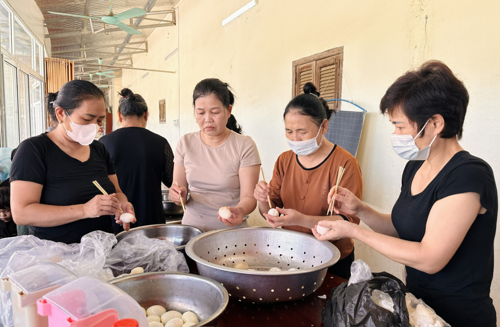 Bà con giáo dân Giáo xứ Thanh Sơn tham gia nấu cơm miễn phí hỗ trợ người dân chịu ảnh hưởng bởi thiên tai.