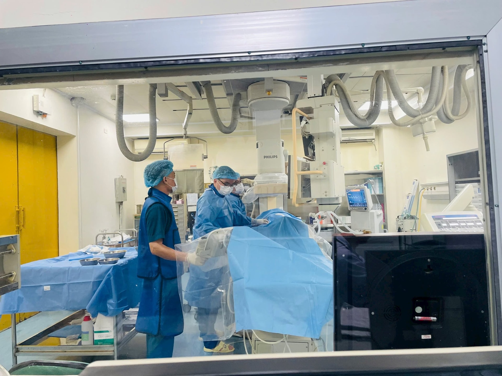 Bệnh nhân được các Bác sỹ Bệnh viện Hữu Nghị Việt Xô thao tác chuyên môn dẫn lưu đài bể thận.