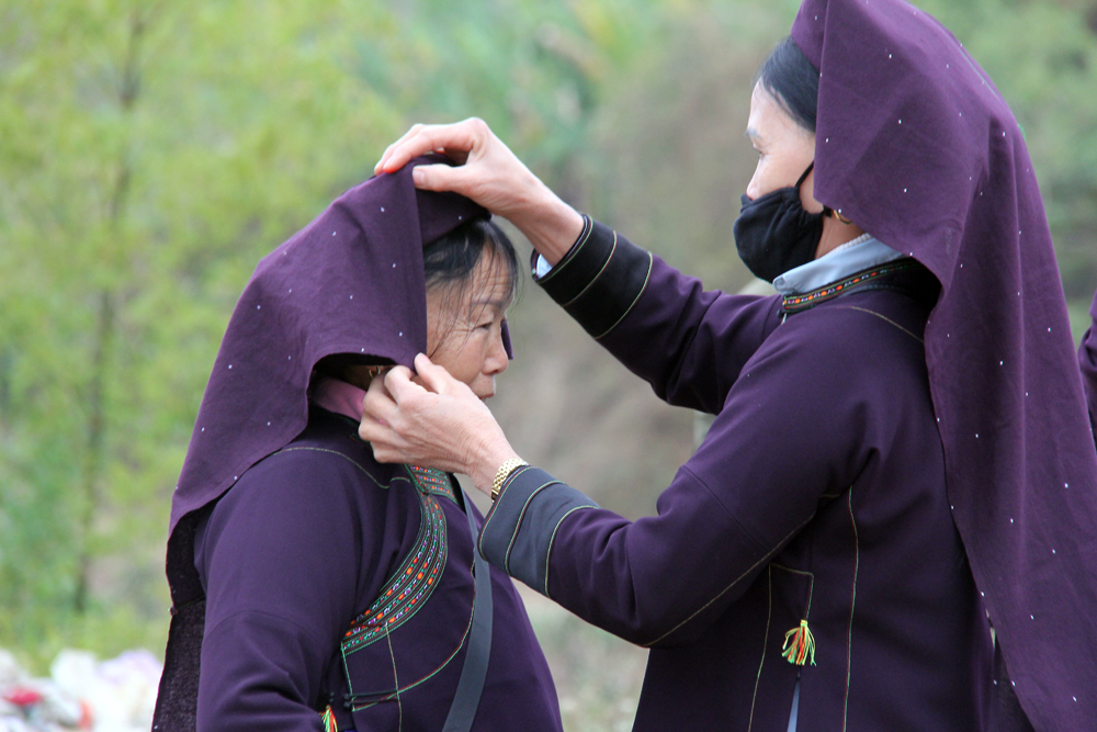 Phụ nữ vùng cao xuống núi dự ngày hội.
